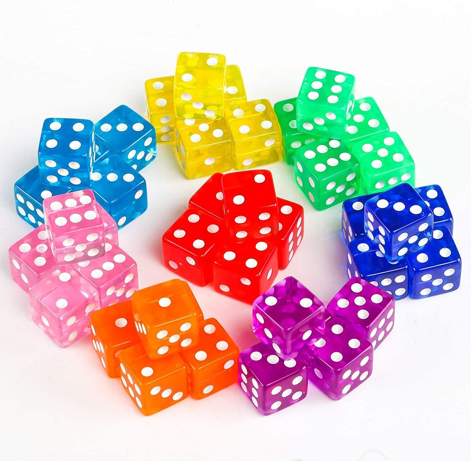 Würfel-Fans aufgepasst! Dieses 40-teilige Set mit bunten Würfeln ist perfekt für alle, die gerne spielen. Jeder Würfel hat die praktische Größe von 16mm und ist natürlich 6-seitig - genau das, was man für die meisten Spiele braucht! Besonders cool: Es gibt 5 Würfel in jeder der 8 Farben - rot, rosa, lila, orange, grün, gelb, blau und hellblau. So kannst du jedem Spieler seine eigene Farbe zuordnen oder einfach bunt gemischt spielen. Die Würfel haben abgerundete Ecken und liegen super in der Hand. Perfekt für Brettspiele, Würfelspiele oder für den Matheunterricht in der Schule. Mit 40 Stück musst du dir keine Sorgen machen, wenn mal einer verloren geht. Übrigens: Wegen der kleinen Teile nicht für Kinder unter 3 Jahren geeignet. Ob für Spieleabende, Unterricht oder einfach nur zum Sammeln - diese bunten Würfel machen einfach Laune!