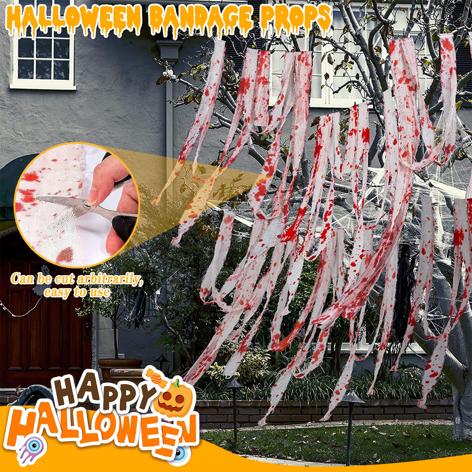 Aus stabilem Polyester-Baumwoll-Gemisch, reißfest und waschbar. Du kannst ihn zuschneiden, zerreißen oder drapieren - deiner Kreativität sind keine Grenzen gesetzt. Ob über Türen, an Wänden, auf Veranden oder als Hintergrund für Gruselfotos.