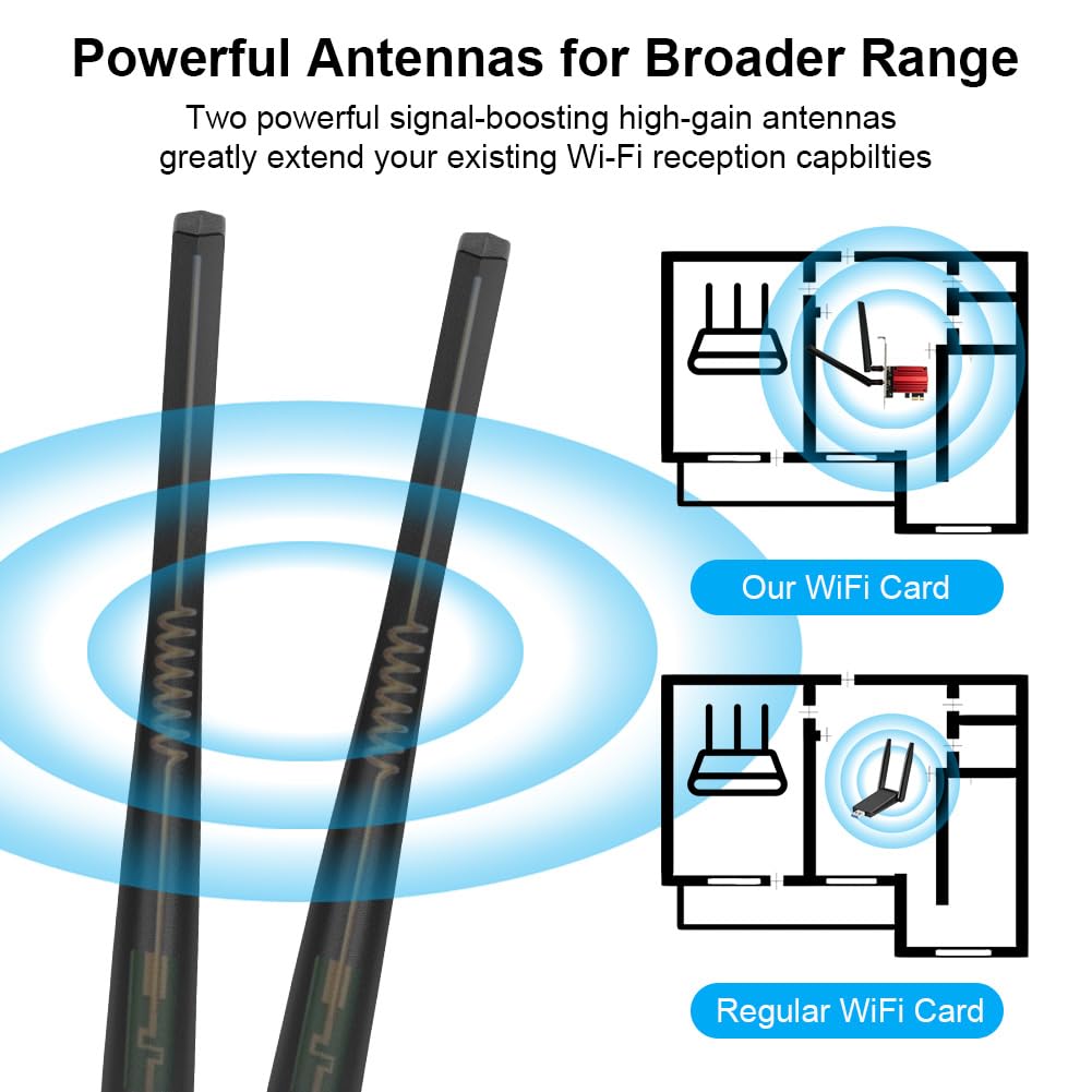 Mega, mit dieser WiFi 7 Karte surfst du so schnell wie noch nie! Die HOTUT PCIE Karte mit Intel BE200 Chip bringt das neueste WiFi 7 in deinen PC. Tri-Band Unterstützung: 6 GHz (5800 Mbit/s), 5 GHz (2400 Mbit/s) und 2,4 GHz (574 Mbit/s) - das ist richtig schnell! Perfekt für 4K/8K Streaming, Gaming und Videokonferenzen ohne Ruckler. Mit Bluetooth 5.4 verbindest du Headset, Controller und mehr - stabiler und reichweitenstärker als je zuvor. WPA3 Sicherheit schützt dich vor Hackern. Einfach in den PCIe Slot stecken, Antennen anschließen, Treiber installieren - fertig! Unterstützt Windows 10/11 64-bit. Aber Achtung: Nur für Intel Motherboards, nicht für AMD! Mit den 6dBi Antennen hast du super Empfang in jedem Zimmer. Endlich kein Kabelsalat mehr und trotzdem maximale Geschwindigkeit. Upgrade deinen PC auf das neueste WiFi - du wirst den Unterschied sofort merken!