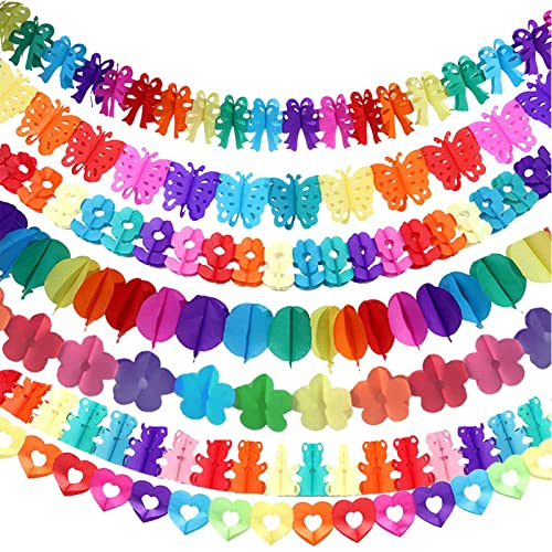 7 Stück Bunte Papier Girlanden - 3m Partydekoration Für Geburtstag & Feste
