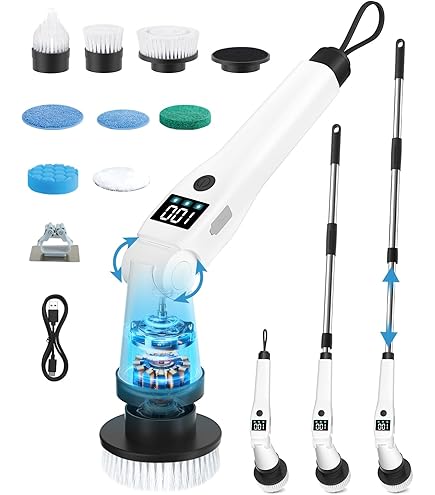Schluss mit anstrengendem Schrubben! Diese elektrische Reinigungsbürste von KOOHORO ist dein neuer bester Freund beim Putzen. Mit 7 verschiedenen Aufsätzen meisterst du jede Reinigungsaufgabe: Flachbürsten für Böden, Tuchbürsten für Möbel, Faserschwämme für die Küche, Wollstoff für Autositze und sogar eine Spitzbürste für Ecken und Fugen! Der geniale verstellbare Griff mit zwei Verlängerungsstangen bedeutet: Nie wieder Rückenschmerzen beim Putzen! Du erreichst damit mühelos alle Stellen ohne dich bücken zu müssen. Mit 2500mAh Akku und Type-C Schnellladung hast du bis zu 90 Minuten Power - und die LED-Anzeige zeigt dir immer den Ladestand an. Das IPX7 Rating macht sie komplett wasserdicht - also perfekt für Bad, Küche und Nassbereiche. Einfach den gewünschten Aufsatz anklicken, einschalten und staunen wie easy Putzen sein kann! Ob Fliesen, Duschkabine, Auto-Innenraum oder Küchengeräte - damit wird jede Oberfläche blitzblank. Einfach aufladen, Aufsatz wählen und putzen wie ein Profi!