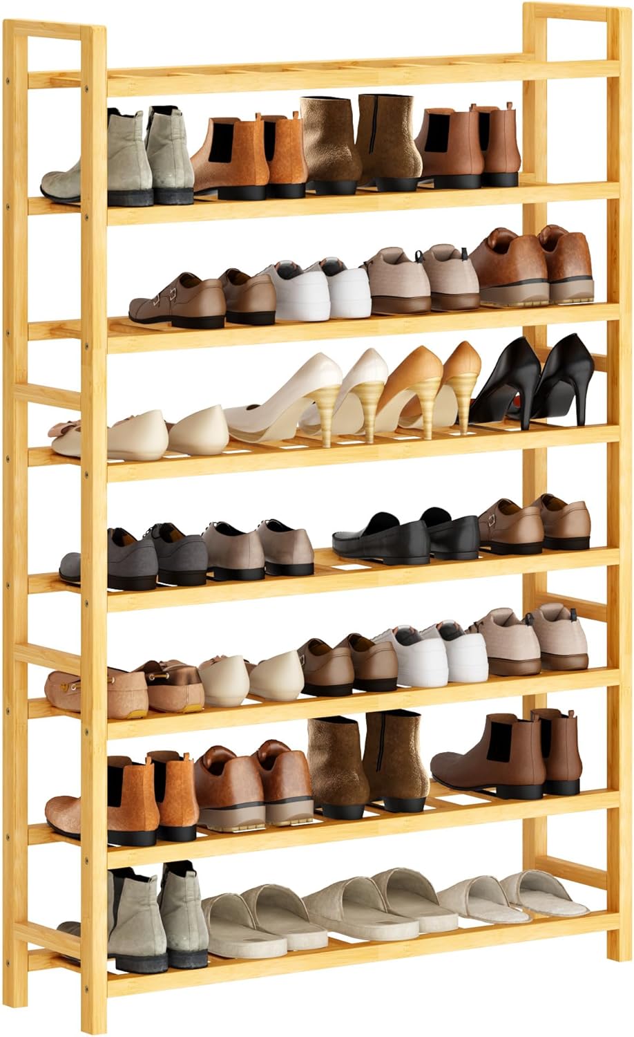 Deine Schuhe liegen überall rum? Dieses drehbare Regal bringt Ordnung in dein Schuhchaos! Der 7-stöckige Turm in schickem Retro-Braun bietet Platz für ca. 21-28 Paar Schuhe - je nachdem wie du sie anordnest. Das geniale: Du musst nicht mehr suchen! Einfach den Turm drehen und schon siehst du alle Schuhe auf einen Blick. Ohne störende Trennwände passen auch Stiefel und High-Heels problemlos. Aus stabilen Stahlrohren und massiven Brettern gefertigt, kippt das Regal nicht um. Der Zusammenbau ist in 20 Minuten erledigt - Werkzeug und Anleitung liegen bei. Perfekt für den Flur, das Schlafzimmer oder den Kleiderschrank. Aber Achtung: Das Teil ist nicht nur für Schuhe super - auch Taschen, Mützen oder Accessoires finden hier platzsparend Platz. Endlich mehr Ordnung und alles immer griffbereit!