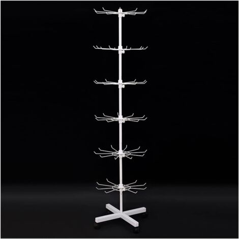 Perfekt für deinen Verkaufsstand oder Shop! Dieser 7-stufige Drehständer bietet reichlich Platz für deine Ware. Mit 160 cm Höhe und 40 cm Durchmesser ist er ein echter Hingucker. Jede der 7 Ebenen hat 10 Haken - ideal für Schmuck, Ketten, Schlüsselanhänger oder sogar Socken und Schals. Das robuste Eisen-Gestell in schwarzer Hochglanz-Lackierung ist stabil und langlebig. Die 4 feststellbaren Rollen machen ihn mobil, während das 360° Drehgelenk deine Produkte von allen Seiten zeigt. Einfach zusammenzubauen und platzsparend zu lagern. Ob auf Messen, im Laden oder für deine private Sammlung - mit diesem Ständer präsentierst du deine Ware perfekt!