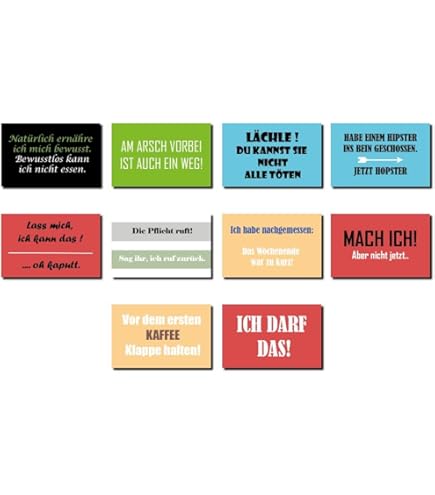Achtung, Ostalgie-Alarm! Dieses witzige 7-teilige Magnetset mit typischen DDR-Sprüchen bringt richtig gute Laune in deine Küche. Die Magnete sind total hochwertig verarbeitet - mit einer schicken Epoxidharz-Beschichtung, die schön glänzt und ewig hält. Im Vergleich zu billigen Folienmagneten haben diese Teile eine feste Mitte und haften bombenfest an jedem Kühlschrank oder Magnetboard. Perfekt als Geschenk für alle, die sich an die gute alte Zeit erinnern wollen - oder einfach mal so für dich selbst! Die Designs kommen aus Berlin und sind richtig liebevoll gestaltet. Über 300.000 Kunden sind schon total begeistert - das spricht für sich, oder? Unterstütze damit ein junges Start-Up aus Deutschland - Julian und Sebastian sagen Danke! Einfach an den Kühlschrank pappen und sich jeden Tag drüber freuen. Die Magnete lassen sich rückstandslos wieder entfernen und kommen in einer süßen Verpackung - ideal zum Verschenken! Ob zu Weihnachten, zum Geburtstag oder einfach als kleines Mitbringsel - damit machst du garantiert jeden glücklich, der ein bisschen Ost-Flair mag!