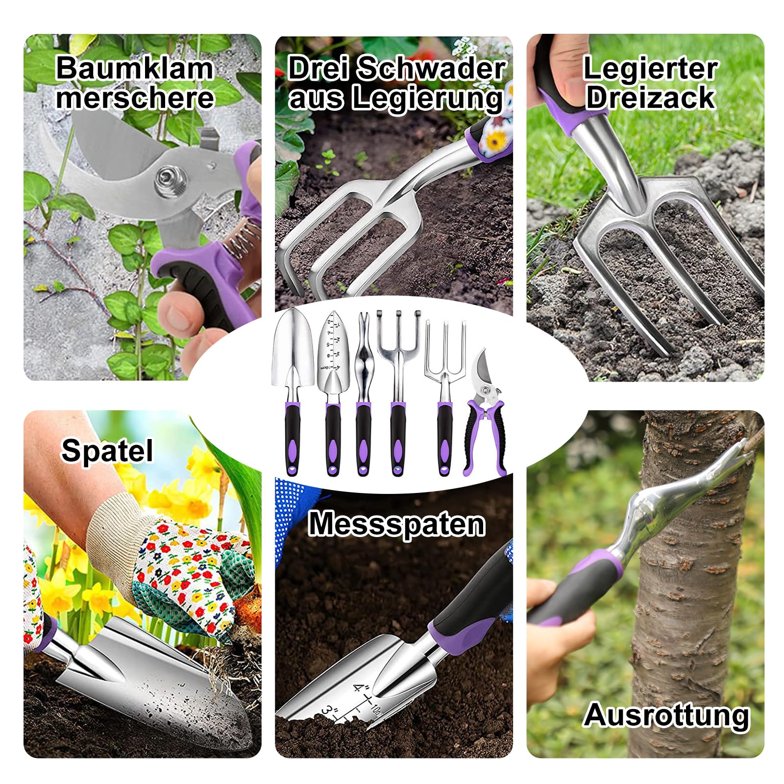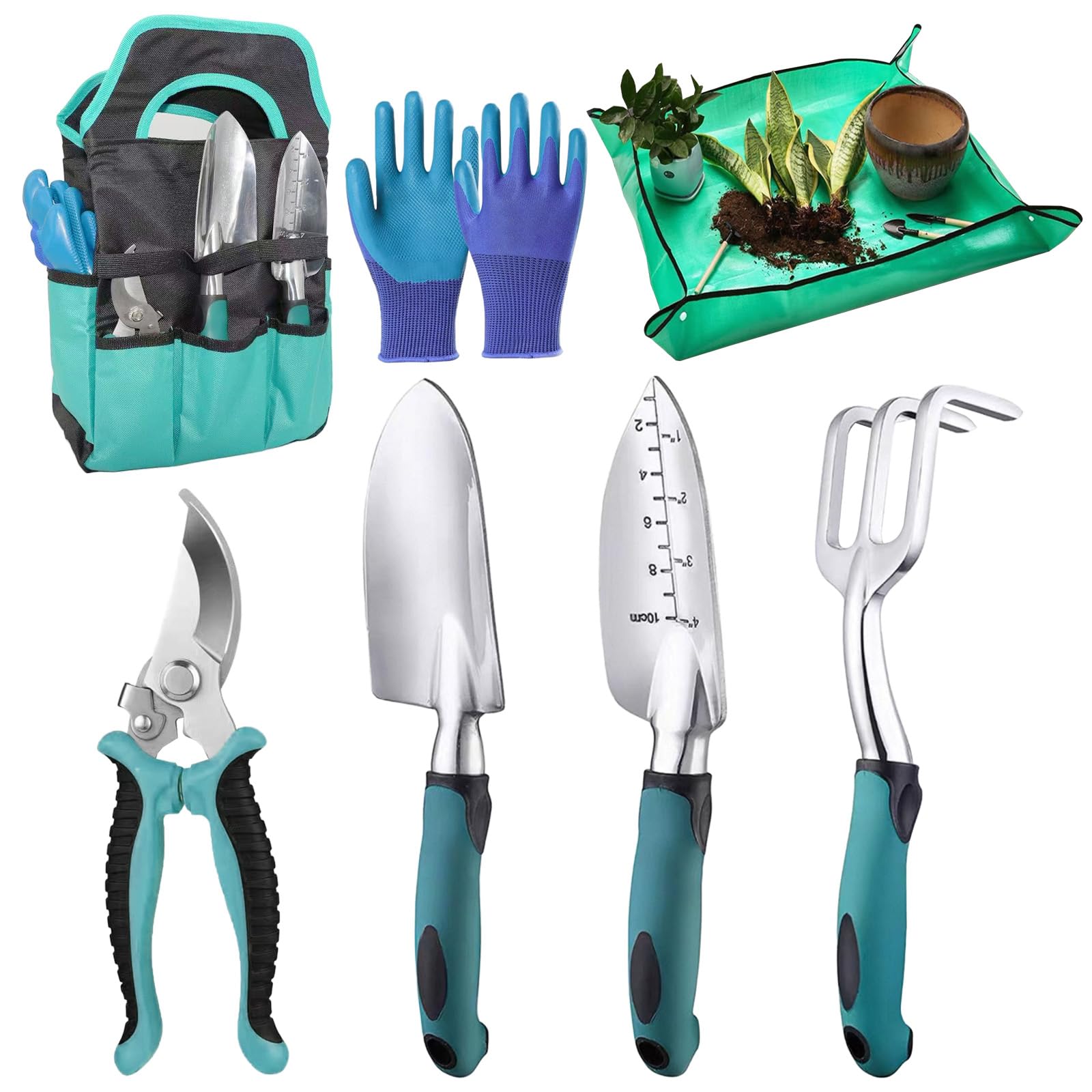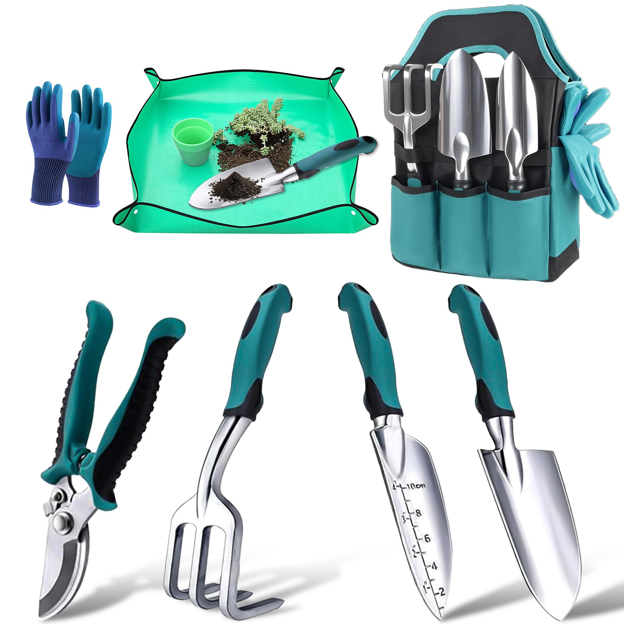 Alles dabei für den perfekten Garten! Dieses 7-teilige Set enthält Handschaufel, Handrechen, Pflanzmaschine, Gartenschere, Gartenmatte, Handschuhe und praktische Aufbewahrungstasche. Aus leichter Aluminium-Legierung - robust und rostfrei. Die ergonomischen Griffe liegen super in der Hand und reduzieren Ermüdung. Die Handschuhe schützen vor Dornen und Schmutz. Alles verstaut ordentlich in der Tasche - perfekt für Garten, Balkon oder Camping. Ein ideales Geschenk für Garten-Neulinge und Profis. So macht Gärtnern richtig Spaß!