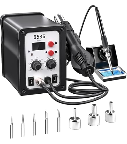 Professionelles Löten für Einsteiger und Profis! Diese 2in1 Lötstation kombiniert Lötkolben und Heißluft in einem Gerät. Mit 700W Leistung und präziser Temperaturregelung von 100-480°C meisterst du jede Lötarbeit. Das klare LED-Display zeigt dir immer die aktuelle Temperatur an. Im Lieferumfang: 5 verschiedene Lötspitzen für unterschiedliche Aufgaben plus 3 Heißluftdüsen. Das energiesparende Standby-System verlängert die Lebensdauer der Heizelemente. Perfekt für Reparaturen von Handys, Laptops, Leiterplatinen und mehr. Ob SMD-Bauteile, SOIC oder BGA - diese Station macht alles mit. Der mitgelieferte Reiniger hält die Spitzen sauber. Sicherheitsfeatures schützen vor Überhitzung. Dein komplettes Lötset für Werkstatt, Hobby oder Beruf!