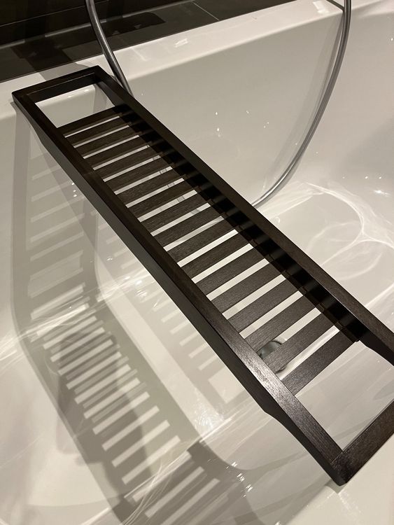 Und das Beste: Sie trägt bis zu 5 kg - da kannst du getrost deine gesamte Bad-Ausrüstung draufstellen. Die geschwungene Aussparung sorgt dafür, dass die Ablage nicht verrutscht. Perfekt für einen entspannten Abend in der Wanne!