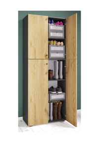 Mensch, dieser VCM Schuhschrank bringt Ordnung in deinen Flur! Mit 70x184x40 cm Maßen - platzsparend aber geräumig. 9 Fächer bieten Stauraum für viele Paar Schuhe - auch für Stiefel! Mit 4 Drehtüren - alles schön versteckt und staubfrei. Aus der Lona-Serie - zeitloses Design das zu jedem Interior passt. Einfach montieren und an die Wand befestigen - für maximale Sicherheit. Perfekt für den Eingangsbereich wo Schuhe schnell mal Chaos machen. Einfach ein praktisches Möbelstück das sich jeden Tag bewährt!