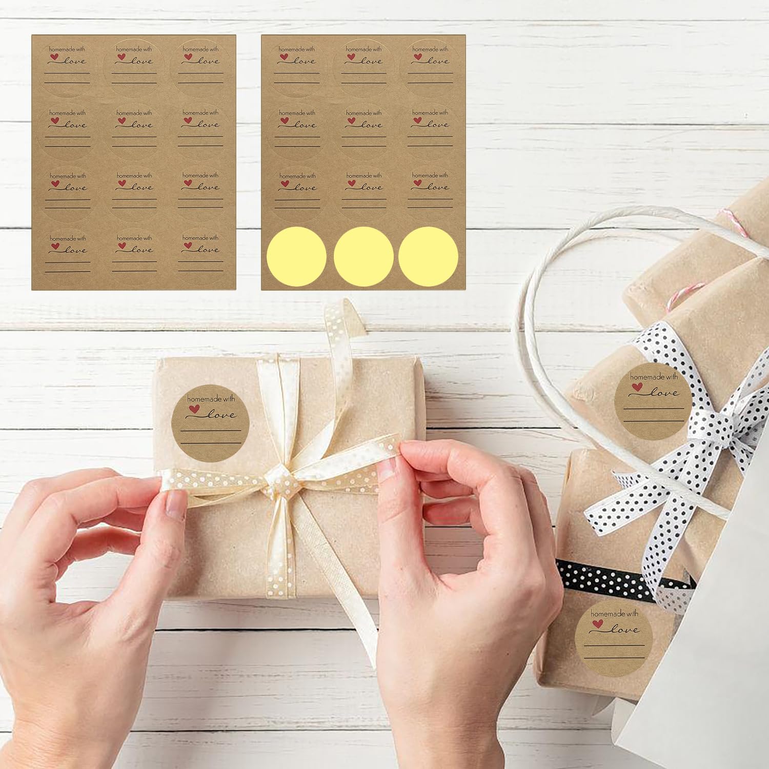 Mit 38mm Durchmesser genau die richtige Größe für Marmeladengläser, Flaschen oder Geschenkanhänger. Sechs verschiedene niedliche Muster, alle mit dem Aufdruck 'mit Liebe selbstgemacht'.