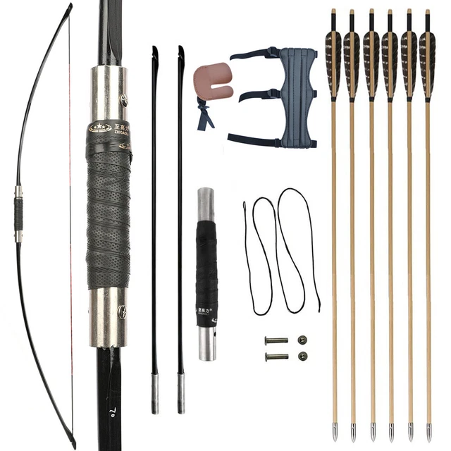 Echt englische Bogen-Tradition! Dieser Drake Langbogen aus Osage Orange Holz, Bitternuss und Bambus ist ein echter Hingucker. Mit 74 Zoll Länge und Zuggewichten von 26-100 lbs ist er für Rechts- und Linkshänder geeignet. Der Leder-Griff liegt super in der Hand, die spitzen Horn-Tips sehen einfach klasse aus. Ohne Bogenfenster - ganz wie in alten Zeiten. Wird inklusive Sehne geliefert. Perfekt für traditionelles Bogenschießen. Ein echter Blickfang und super zu schießen!