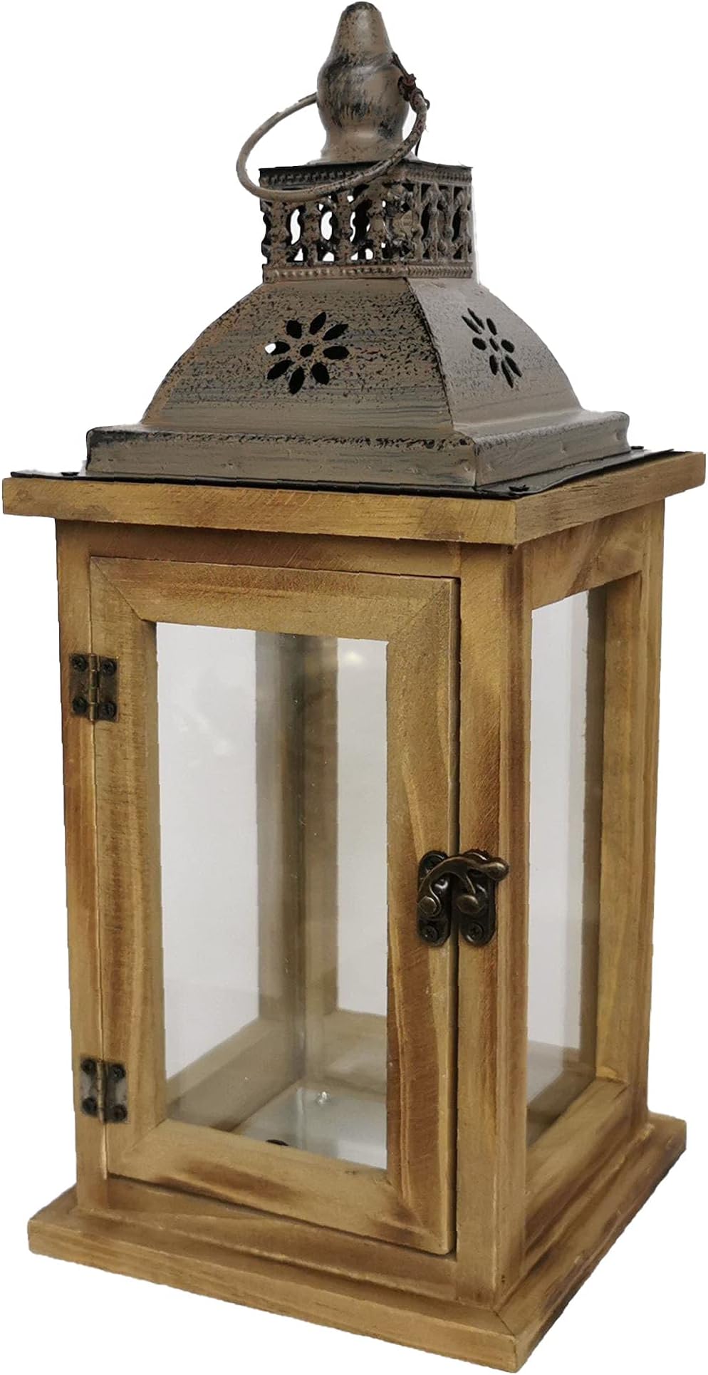 Diese handgefertigte Holzlaterne verbreitet sofort gemütliche Atmosphäre! Mit ihren stattlichen 75 cm Höhe und 25x25 cm Grundfläche ist sie ein echter Hingucker auf Terrasse, im Garten oder Wohnzimmer. Das rustikale Design mit Holz, Glas und verziertem Metalldach passt perfekt in den Landhausstil. Die seitliche Tür lässt sich leicht öffnen - ideal zum Platzieren einer Kerze oder zum Dekorieren. Besonders praktisch: Das belüftete Metalldach sorgt für gute Luftzirkulation und mehr Sicherheit. Die Laterne ist ein Unikat - jede hat ihre eigene Maserung und Charakter. Ob für romantische Abende, Gartenpartys oder als stimmungsvolle Deko im Eingangsbereich - diese Laterne macht immer eine gute Figur. Tipp: Am besten unter einem überdachten Bereich platzieren, dann hält sie besonders lange. Ein wunderbares Geschenk für alle, die es gemütlich lieben!