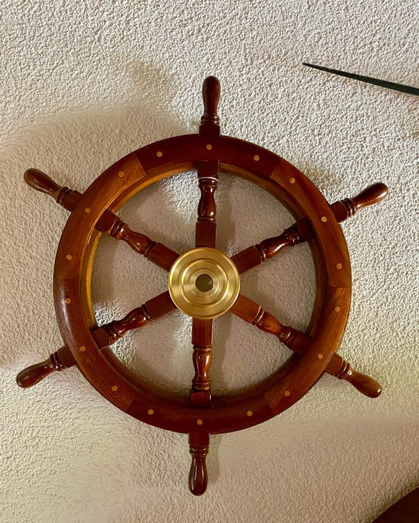 Ahoy! Dieses wunderschöne Schiffssteuerrad von linoows bringt maritimen Flair in dein Zuhause. Aus massivem Sheesham Holz gefertigt mit edler Messingnabe. Mit 75cm Durchmesser ein echter Hingucker an der Wand. Im antikisierten Look - die Gebrauchsspuren sind gewollt und unterstreichen den nostalgischen Charakter. Perfekt für Wohnzimmer, Flur oder als besonderes Deko-Element. Jedes Stück ein Unikat mit natürlicher Holzmaserung. Ob für eine maritim eingerichtete Wohnung oder als Geschenk für Seefahrer-Fans - dieses Steuerrad begeistert jeden. Einfach aufhängen und vom Charme der Weltmeere verzaubern lassen!