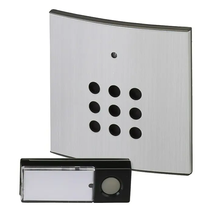 Endlich keine lästigen Kabel mehr! Dieses Heidemann Funkgong-Set Radix in reinweiß ist die perfekte Lösung für dein Zuhause. Mit satten 75 Metern Reichweite im freien Feld - auch wenn Wände und Metall die Reichweite etwas reduzieren, klingelt's zuverlässig! Drei verschiedene Melodien zur Auswahl und die Lautstärke ist bis 80 dB regulierbar. Der Sender ist wetterfest mit IP44 - kann also auch draußen am Haus montiert werden. Praktisch: Mit Namensschild für die persönliche Note! Der Empfänger hat zusätzlich ein optisches Rufsignal mit zwei blauen LEDs - super für lärmige Umgebungen oder wenn du schlecht hörst. Einfache Wandaufhängung und die Funkfrequenz ist selbstlernend. Lieferung inklusive 3V CR2032 Batterie für den Sender - für den Empfänger brauchst du noch 3x 1,5V Mignon-Batterien. Maße: Empfänger 97x97x26mm, Sender 73x32x21mm. Einfach montieren und nie wieder verpassen, wenn's klingelt!
