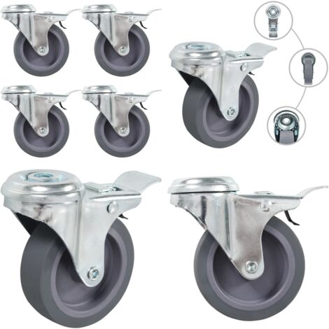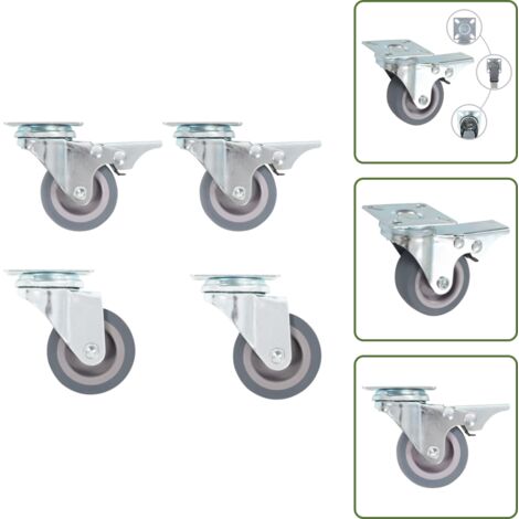 • 4 Lenkrollen Mit Feststeller 75mm - TPE-Gummi, Für Möbel & Geräte