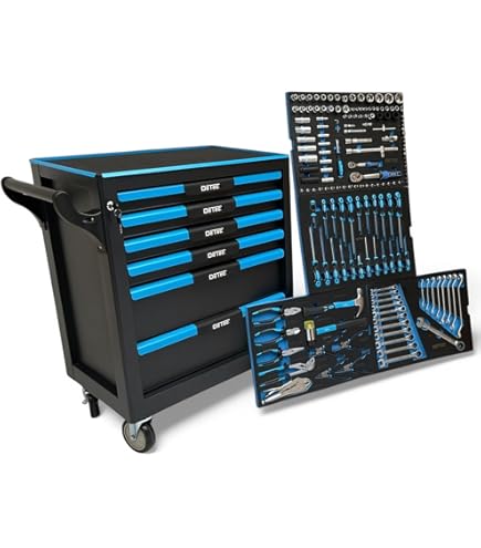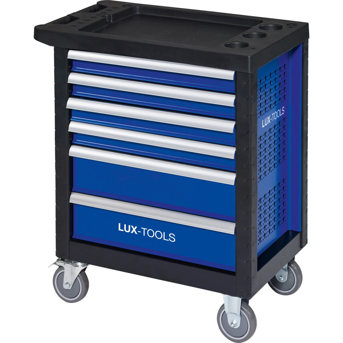 Dieser FORTIS Werkstattwagen ist ein echter Arbeitsplatz-Organizer! Mit 910x475x1000mm bietet er riesigen Stauraum für dein Werkzeug. 7 Schubladen mit Vollauszug und kugelgelagerten Führungsschienen - alles läuft butterweich. Jede Schublade hält 40kg, der ganze Wagen sogar 550kg! Mit 2 Lenkrollen und 2 Feststellrollen fährst du ihn einfach dahin, wo du ihn brauchst. Die gasfederbelasteten Türen und die Zentralverriegelung mit Schloss schützen dein Equipment. Inklusive 3 praktischen Sichtlagerkästen und Schutzmatten in allen Schubladen. Aus stabilem Stahlblech, pulverbeschichtet - made für den harten Werkstatt-Alltag. Einfach zusammenbauen und endlich Ordnung in deiner Werkstatt schaffen!