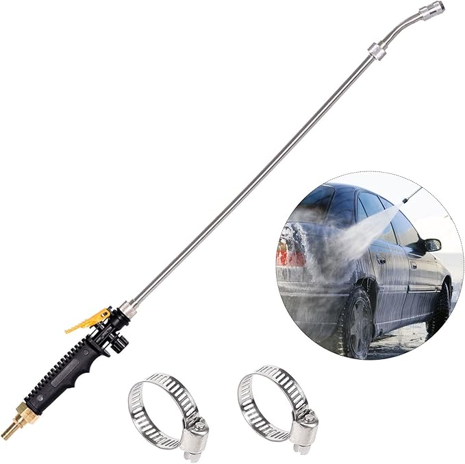 Für alle die ihren Garten lieben! Dieser Edelstahl-Sprühstab ist 73,7cm lang und macht das Wässern zum Kinderspiel! Aus robustem Edelstahl und Messing - hält ewig! Mit verriegelbarem Handhebel - kannst du feststellen für kontinuierliches Sprühen ohne Fingerkrampf! Verstellbares Sprühmuster - von feinem Nebel bis kräftigem Strahl alles möglich! Kommt mit zwei Messing-Widerhaken für 3/8 Zoll und 1/4 Zoll Schläuche - passt also an fast alles! Einfache Installation - Schlauch abschneiden, Stab rein, mit Klemmen sichern - fertig! Perfekt fürs Auto waschen, Pflanzen gießen oder Hochdruckreinigung! Macht jede Gartenarbeit leichter und effizienter! Ob Profi oder Hobbygärtner - mit diesem Teil wird's ein Spaß! Einfach in der Handhabung und super praktisch!