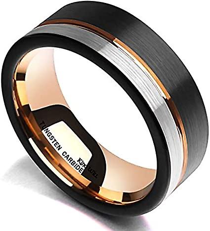 Der Ehering fürs Leben! Dieser Wolframcarbid Ring in 8 mm Breite ist genau das Richtige für alle, die Wert auf Langlebigkeit und Style legen. Die Kombination aus Roségold, Schwarz und Silber sieht einfach mega aus und passt zu jedem Anlass. Besonders praktisch: Wolframcarbid ist extrem kratzfest - dein Ring sieht also auch nach Jahren noch aus wie neu. Die gebürstete, matte Oberfläche fühlt sich super an und die glatte Innenseite sorgt für optimalen Tragekomfort. Egal ob für die Hochzeit, den Jahrestag oder einfach als Geschenk für deinen Partner - dieser Ring macht was her. Perfekt für den täglichen Gebrauch, weil er kaum Pflege braucht und sich nicht so schnell zerkratzt wie andere Materialien. Der 'bequeme Fit' sitzt angenehm am Finger und drückt nicht. Ein echter Klassiker, der nie aus der Mode kommt. Du suchst einen Ring, der sowohl robust als auch stylisch ist? Hier bist du genau richtig! Einfach ein zeitloses Design, das zu jedem Outfit passt und deine Verbindung perfekt symbolisiert. Dein Ring sollte genauso besonders sein wie eure Liebe - und das ist er mit diesem Modell definitiv!