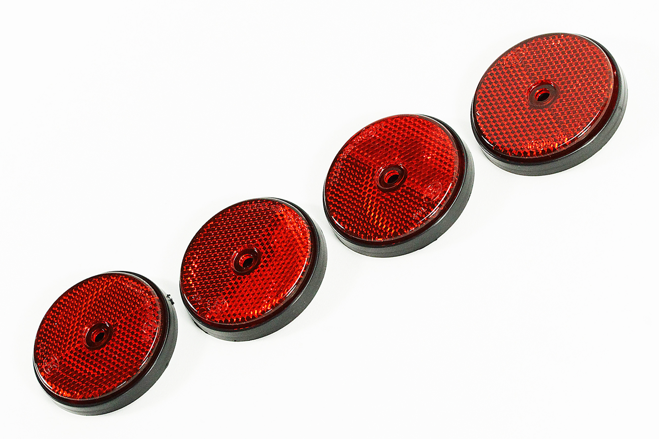 Mehr Sicherheit im Straßenverkehr! Diese 8 roten Katzenaugen-Reflektoren mit E-Prüfzeichen sind offiziell für den Straßenverkehr zugelassen und erfüllen alle Sicherheitsstandards. Hergestellt aus hochwertiger Acryllinse und ABS-Kunststoffbasis sind sie wasserdicht, abriebfest und bruchsicher - perfekt für den langfristigen Einsatz im Freien. Mit 60 mm Durchmesser und 6 mm Loch sind sie ideal zum Anschrauben an Anhänger, LKWs, Wohnwagen, Transporter, Traktoren, Pritschenwagen, Motorräder und Fahrräder. Die Installation ist denkbar einfach: Einfach ein Loch bohren, Schrauben durchstecken und Mutter festziehen. Die hervorragende Reflektivität erhöht die Sichtbarkeit in der Dunkelheit deutlich und sorgt für mehr Sicherheit bei Nachtfahrten. Im Lieferumfang sind 8 Reflektoren plus 8 Schrauben und Muttern aus Edelstahl enthalten. Perfekt auch für Straßenmarkierungen, Zaunpfähle, landwirtschaftliche Maschinen und Gartenzäune!