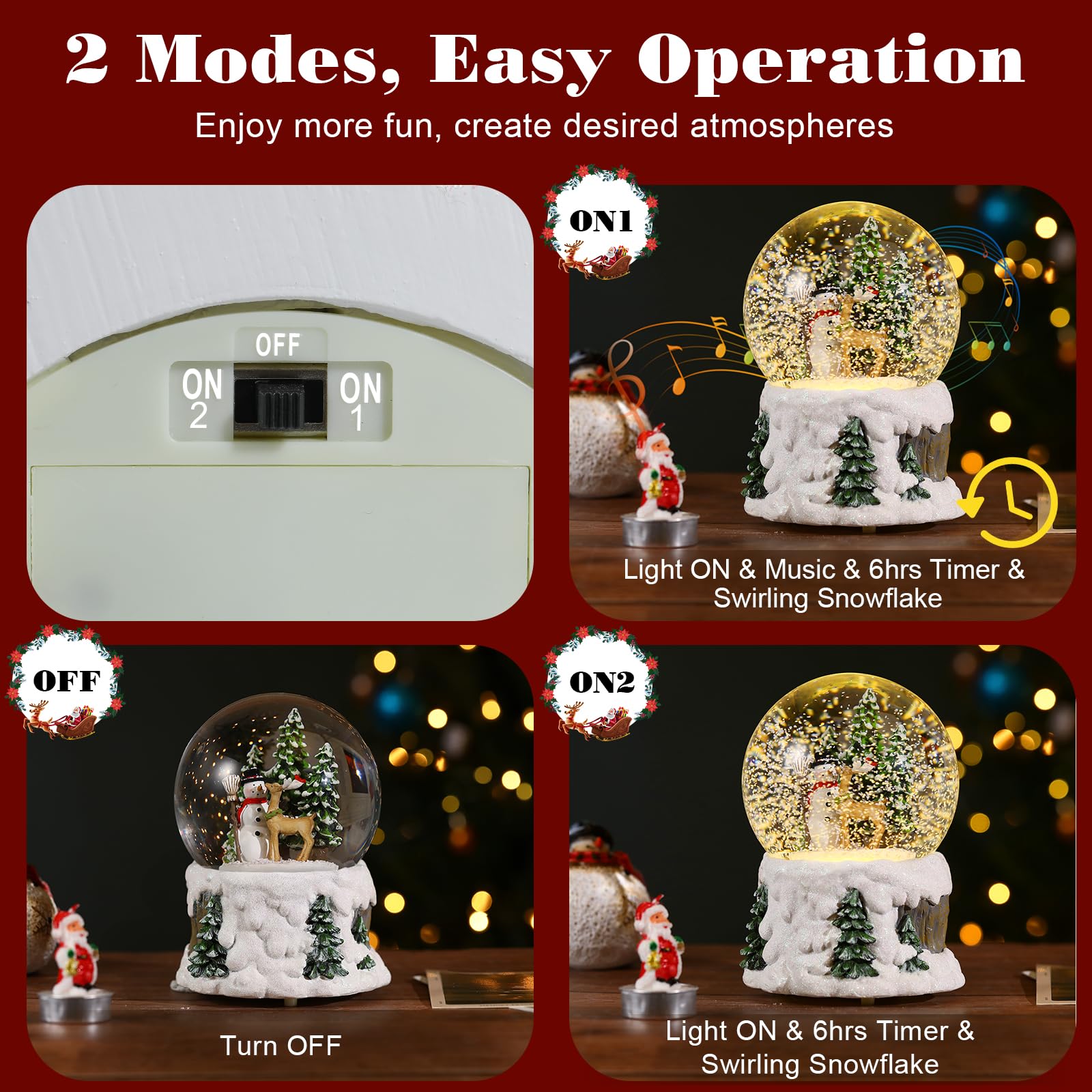 Diese Schneekugel bringt Weihnachtszauber in dein Zuhause! Drinnen tanzen die Glitzerflocken um einen niedlichen Schneemann mit grauem Schal - und das bei 8 verschiedenen Weihnachtsliedern! Du hast die Wahl: Musik und Licht zusammen an, oder nur das warme Weißlicht. Der 6-Stunden-Timer macht's praktisch - musst du nicht dran denken auszuschalten. Betrieben wird sie entweder per USB-Kabel (im Lieferumfang) oder mit 3 AA-Batterien. Damit kannst du sie überall hinstellen: Auf den Kaminsims, den Esstisch, ins Regal oder als Highlight am Weihnachtsbaum. Die Schneekugel ist 30x12,5x12,5 cm groß - also nicht zu klein, nicht zu groß. Einfach den Schalter umlegen und schon wirbeln die Flocken, leuchtet das Licht und erklingen die Weihnachtsklassiker. Richtig gemütlich wird's damit! Auch ein super Geschenk für Weihnachtsfans - verschenk doch mal ein bisschen Weihnachtsmagie! Die Qualität ist top und die Stimmung garantiert!