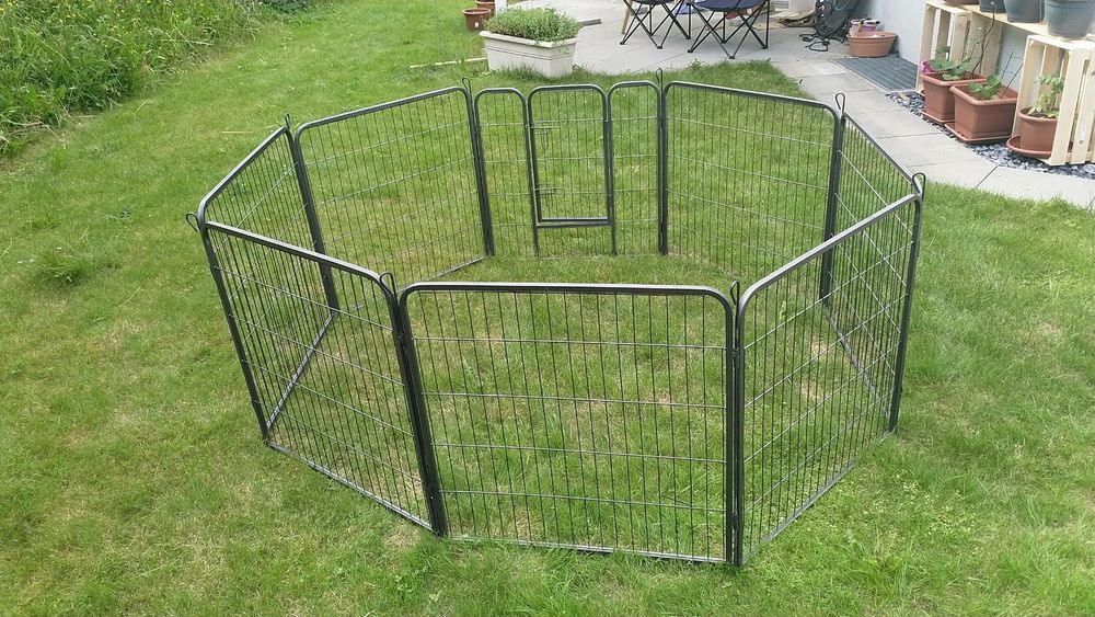 Perfekter Auslauf für deine Welpen! Dieses 8-teilige Freigehege von Melko gibt deinem Hund genug Platz zum Spielen - jedes Element misst 80x80cm. Super flexibel: Du kannst es in verschiedenen Formen aufstellen und es passt sich deinem Raum an. Maximaler Durchmesser bis 240cm - richtig viel Platz für deinen kleinen Liebling. Mit dunklem Hammerschlaglack - mega robust und langlebig. Keine scharfen Kanten, alles ist entgratet - sicher für deine Tiere. Einfach aufzubauen, ohne Werkzeug - auch für drinnen und draußen geeignet. Perfekt für Garten, Wohnzimmer oder Terrasse. Langer Text für die Mindestzeichenzahl - aber dieses Gehege ist ein echter Game-Changer für Hundebesitzer! Dein Welpe kann sicher toben und du musst dir keine Sorgen machen. Einfach bestellen und aufbauen - dein Hund wird es lieben! Ideal für die Sozialisierung und um deinem Welpen Freiraum zu geben. Qualität die hält - da freut sich jeder Vierbeiner!