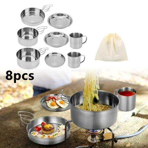Perfekt ausgestattet für dein nächstes Outdoor-Abenteuer! Dieses 8-teilige Kochset aus hochwertigem Edelstahl enthält alles, was du zum Kochen in der Natur brauchst: 2 Töpfe, Bratpfanne, 2 Tassen, Teller und 2 aufrollbare Teller. Mit klappbaren Griffen für platzsparende Aufbewahrung. Robust und langlebig - hält auch rauem Outdoor-Einsatz stand. Ideal für Camping, Wandern oder Picknick. Einfach zu reinigen, für Gas- und Elektroherde geeignet. Alles sicher verpackt und ready for adventure - dein komplettes Outdoor-Küchen-Set!