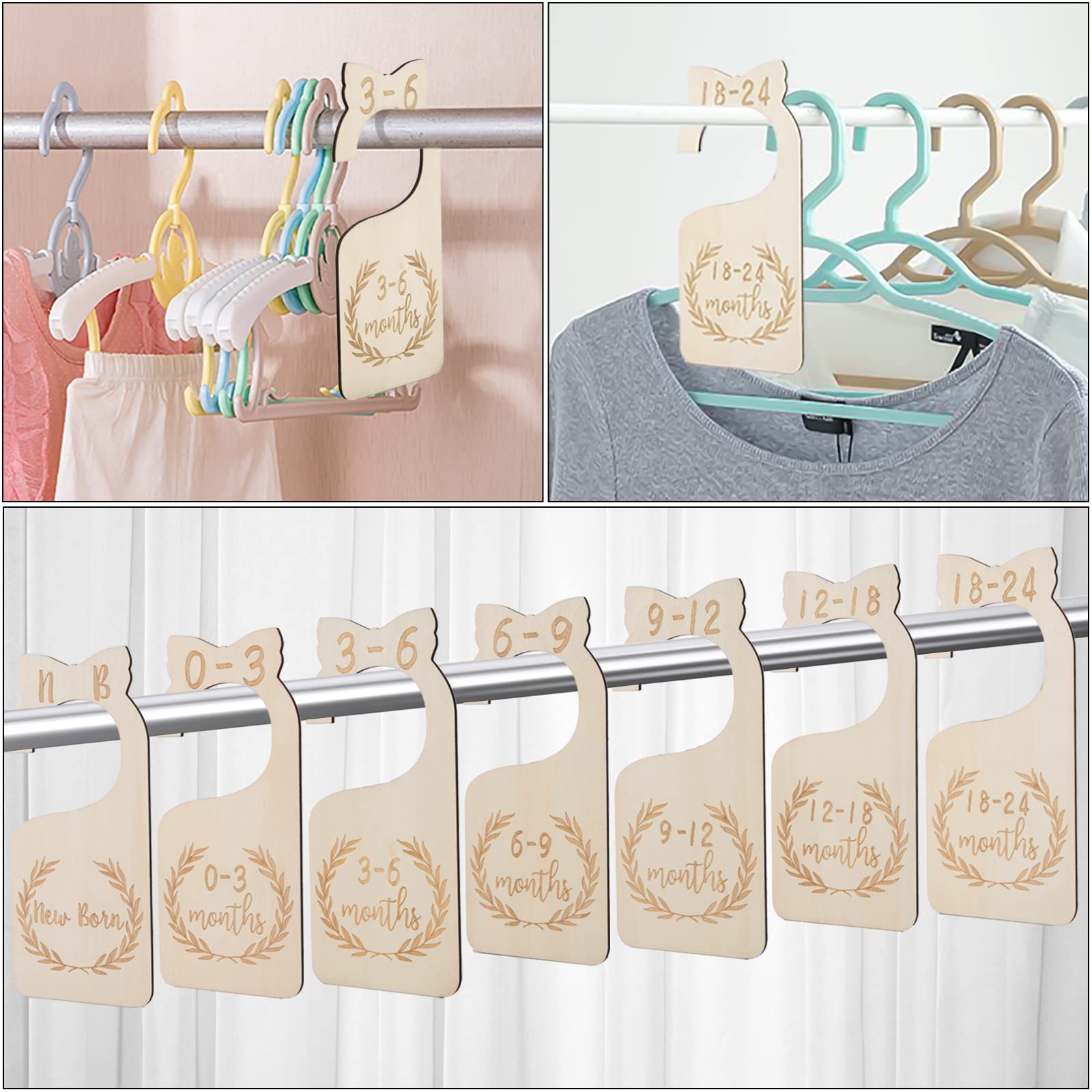 Nie mehr Chaos im Babyzimmer! Mit diesen 8 niedlichen Holz-Trennwänden behältst du immer den Überblick über die Kleidergrößen deines Kindes. Von Neugeborene bis 24 Monate ist alles dabei - praktisch beschriftet und mit süßem Blatt-Design. Jeder Teiler ist 9,5 x 18 cm groß und hat einen sicheren Haken für die Kleiderstange. Aus natürlichem Holz gefertigt, ohne scharfe Kanten und geruchsneutral. Perfekt als Geschenk für werdende Eltern oder zur eigenen Organisation. Wichtig: Nicht ins Wasser legen oder in direkte Sonne stellen, dann halten die Teiler ewig!