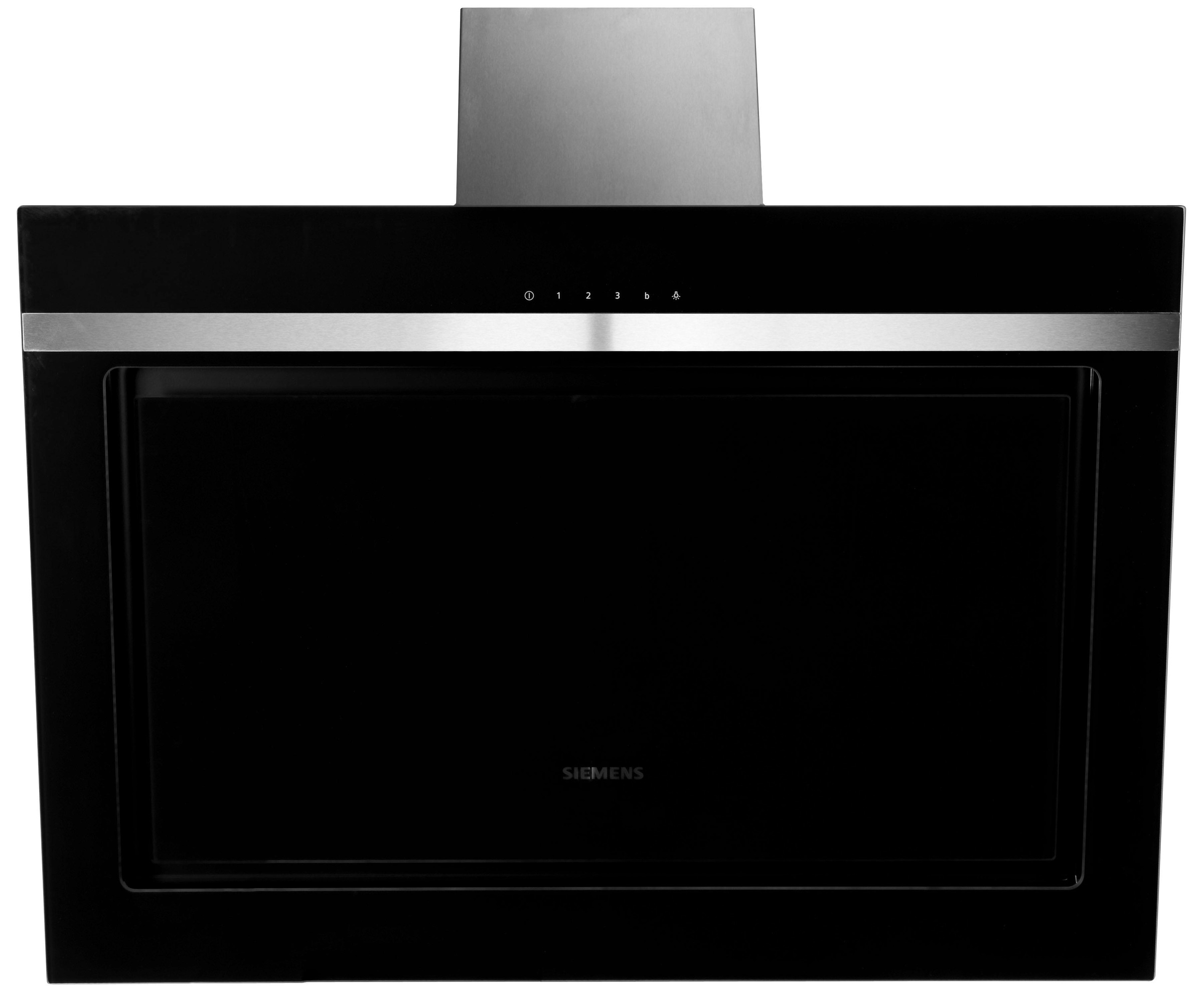 Diese Siemens Dunstabzugshaube in schickem Schwarz ist mit 80 cm Breite perfekt für die meisten Kochstellen. Sie ist kopffrei und wird einfach an der Wand montiert. Die schwarze, bedruckte Glasscheibe sieht super modern aus und ist leicht zu reinigen. Mit der praktischen touchControl-Bedienung stellst du ganz easy zwischen 3 Leistungsstufen und ner Intensivstufe um - die Intensivstufe schaltet sich sogar automatisch nach ner Zeit wieder zurück. Zwei super helle LEDs (je 1,5W) beleuchten deine Kochfläche gleichmäßig mit 114 Lux. Die Haube hat nen starken Kondensatormotor und ein doppelflutiges Gebläse, das satte 680 m³/h schafft (bei 69 dB(A)). Du kannst sie sowohl im Abluft- als auch im Umluftbetrieb nutzen - für Umluft brauchst du aber noch nen separates Umluftset. Die Randabsaugung und zwei Absaugbereiche (Front und Unterseite) sorgen für nen hohen Fettabscheidegrad. Der Metall-Fettfilter ist spülmaschinengeeignet, also super hygienisch. Abluftstutzen ist 150 mm (Adapter für 120 mm liegt bei). Nett: Das Anschlusskabel (1,3 m) hat schon nen Stecker. Maße als Abluft: 78-106,6 cm hoch, 80 cm breit, 43,4 cm tief. Insgesamt ne hochwertige Haube, die Leistung und Style vereint!