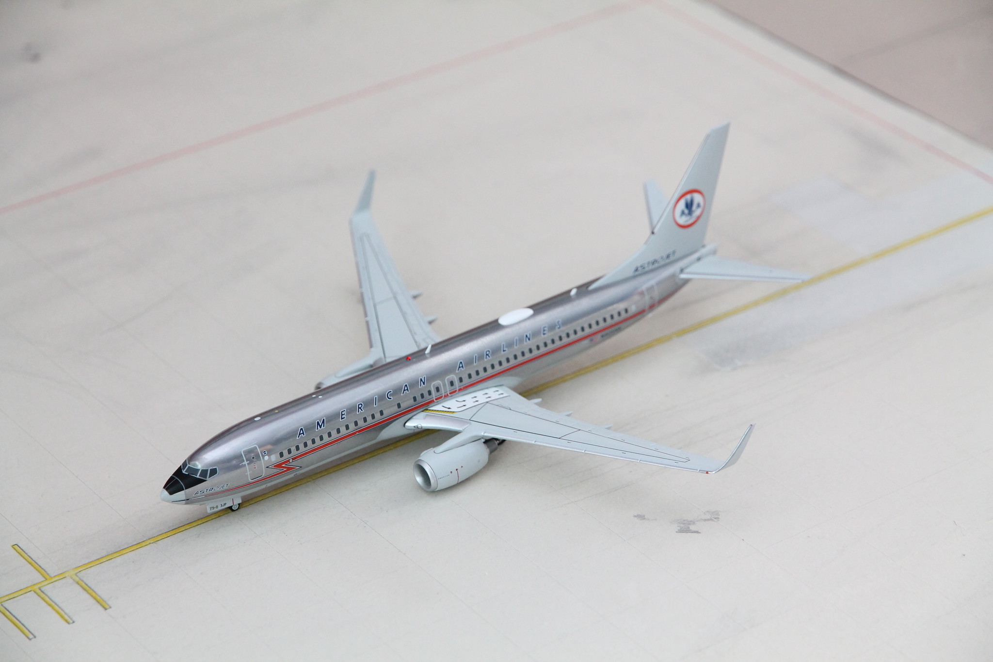 Wow, dieses Boeing 737-800 Modell von American Airlines im klassischen Astrojet-Design ist einfach der Hammer! Das polierte Finish glänzt richtig schön und macht was her in deiner Vitrine. Mit den Maßen von etwa 10 cm Länge und 9 cm Spannweite passt das Modell super in jede Sammlung. Übrigens, das ist die Maschine mit der Registrierung N905NN - ein echter Hingucker für alle Aviation-Fans. Das Modell im Maßstab 1:400 ist super detailliert verarbeitet, von den Flügeln bis zum Fahrwerk. Perfekt für dein Büroregal oder die Wohnzimmervitrine. Ob als Geschenk für einen Flugzeugbegeisterten oder zur Aufwertung deiner eigenen Sammlung - dieses Stück kommt einfach gut an! Und falls du dich fragst: Ja, die Lackierung entspricht genau dem originalen Astrojet-Design, das American Airlines so berühmt gemacht hat. Einfach ein must-have für jeden, der sich für Flugzeuge interessiert!