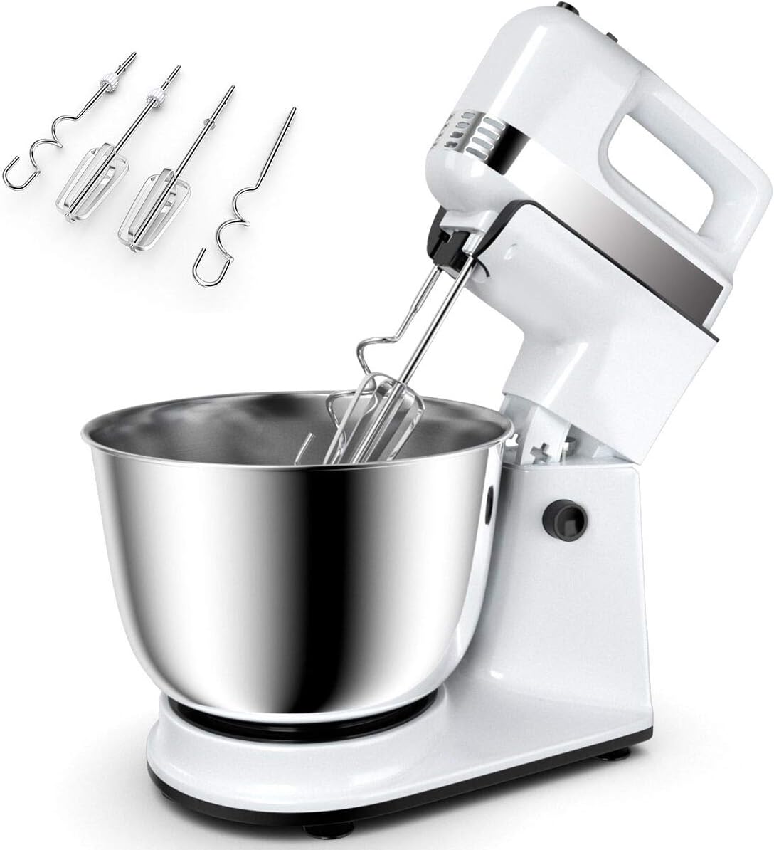 Boah, dieser Mixer hat richtig Power! Mit 800W Leistung und 5 einstellbaren Geschwindigkeiten meistert er alles - von luftigem Eischnee bis zu festem Brotteig. Im Set: 2 Teighaken und 2 Schneebesen aus Edelstahl. Die Spiral-Teighaken kneten wie von Hand, nur ohne Anstrengung. Mit der Turbo-Taste geht's direkt auf maximale Geschwindigkeit. Sicherheits-Feature: Wärmeableitung verhindert Überhitzung. Maße: 28,5x8x19cm, also platzsparend in der Küche. Oberfläche glatt, Rührstäbe abnehmbar - leicht zu reinigen. Ob Kuchen, Brot oder Cremes - damit wird Backen zum Kinderspiel. Sogar mit den Kids zusammen macht's Spaß! Ein echter Küchenhelfer für Hobbybäcker.