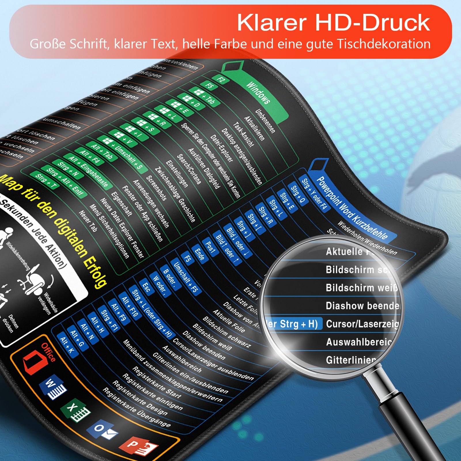 Wow, dieses XL Mousepad ist ja mega praktisch! Mit 80x30cm bietet es Platz für Maus, Tastatur und sogar deinen Laptop. Das coole Feature: Die Excel-Shortcuts sind direkt aufgedruckt - super hilfreich für Office-Arbeit oder Studium. Die rutschfeste Gummi-Unterseite hält bombenfest auf dem Tisch. Die wasserfeste Oberfläche ist leicht zu reinigen und die Farben verblassen nicht. Perfekt für Gamer, die viel Platz brauchen, oder Büro-Menschen, die ihre Excel-Skills verbessern wollen. Die doppelt vernähten Kanten verhindern Ausfransen. Ob fürs Home-Office, Gaming-Setup oder Studium - diese Unterlage macht einfach alles mit. Sieht nicht nur professionell aus, sondern ist auch noch mega funktional. Dein Schreibtisch wird damit sofort aufgewertet!