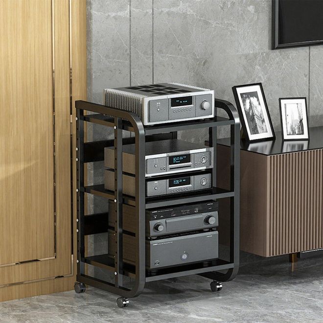 Präsentiere deine Audio-Anlage stilvoll! Dieses HiFi-Rack aus Bambus und Verbundplatte bietet auf 3 verstellbaren Ebenen Platz für Plattenspieler, Verstärker, Receiver und deine wertvolle Vinyl-Sammlung. Mit 80cm Breite und retro-gelbem Design ein echter Blickfang. Die Höhe der Regale lässt sich alle 8cm anpassen - perfekt für verschiedene Gerätehöhen. Die hintere Blende verhindert das Herunterfallen von Gegenständen. Mit Rollen für einfaches Verschieben. Ideal für Wohnzimmer, Home-Office oder Musikzimmer. Stabiles Design das auch schwereren Komponenten sicher trägt. Deine Geräte werden nicht nur optimal präsentiert, sondern haben auch genug Belüftung!