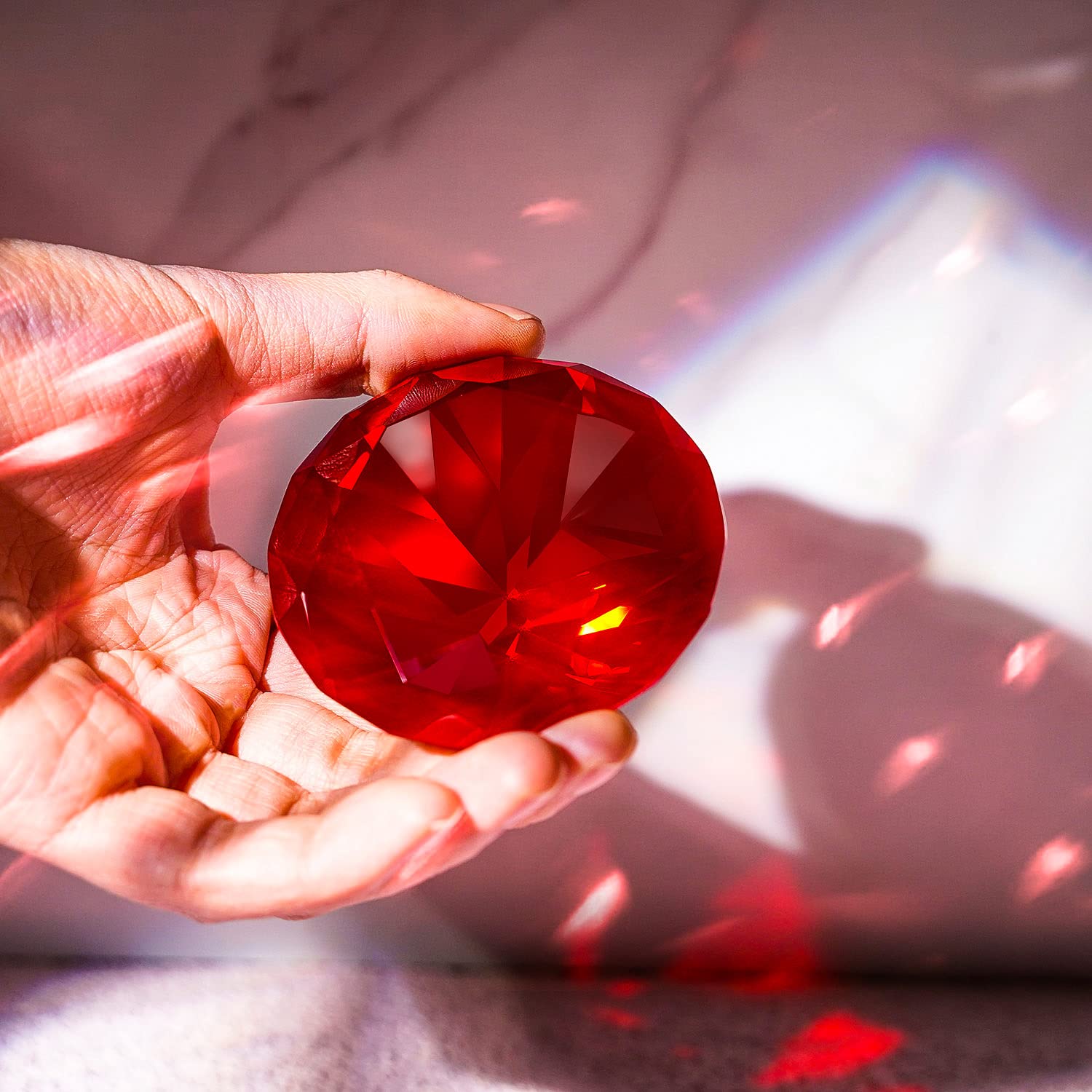 Dieser Kristall-Diamant-Briefbeschwerer von QUARKZMAN ist einfach magisch! Aus hochwertigem K9-Kristall gefertigt, funkelt er in allen Regenbogenfarben wenn Licht darauf fällt. Mit 80mm Durchmesser und 45mm Höhe ist er ein echter Hingucker auf jedem Schreibtisch. Das Gewicht von 282g macht ihn stabil genug als Briefbeschwerer, aber nicht zu schwer. Die 360-Grad-Spiegelpolitur ist absolut perfekt - keine Blasen, makellos klar und glänzend. Er schafft sofort eine gemütliche, einladende Atmosphäre wherever du ihn hinstellst. Super als Deko fürs Wohnzimmer, Büro oder als Tischdekoration für Partys. Auch ein tolles Geschenk für Geburtstage, Hochzeiten oder Jubiläen - wer freut sich nicht über so einen funkelnden Eyecatcher? Einfach hinstellen und staunen, wie das Licht in allen Farben des Regenbogens gebrochen wird!