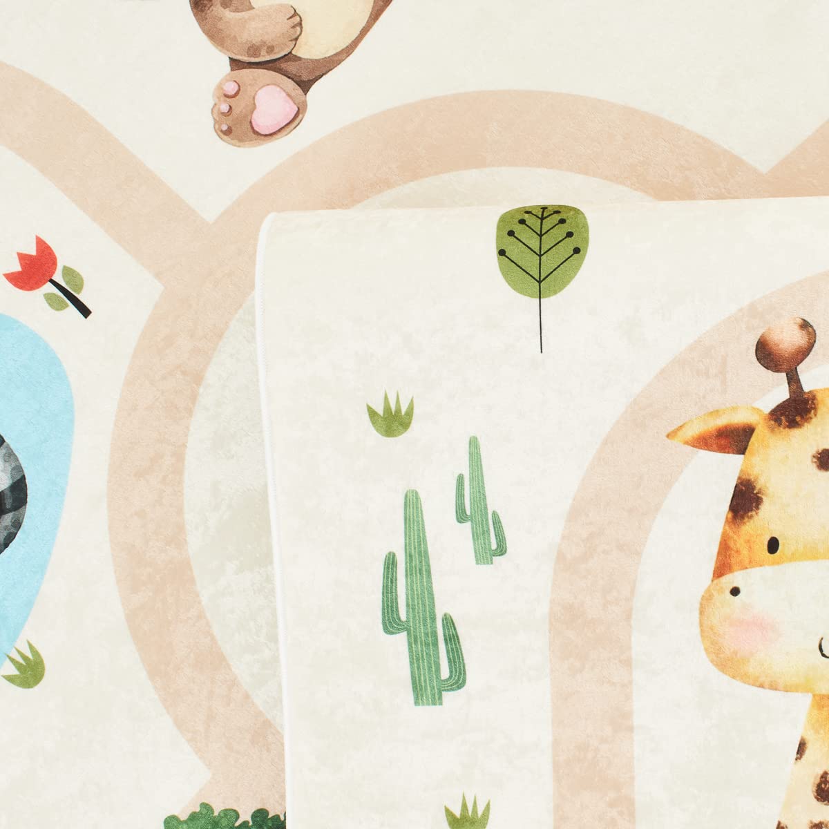 Hey Eltern! Suchst du einen sicheren und gemütlichen Spielteppich für dein Kind? Unser Nazar Kinderteppich mit Dinosaurier-Motiv verwandelt jedes Kinderzimmer in eine Abenteuer-Landschaft! Die Größe von 80x150cm bietet genug Platz zum Spielen, Krabbeln und Toben! Super weiches Flanell-Material fühlt sich kuschelig weich an kleinen Füßen an! Die rutschfeste Basis mit Kunststoffnoppen verhindert lästiges Verrutschen - absolute Sicherheit für dein Kind! Bei 30°C in der Maschine waschbar - Flecken sind kein Problem! Der eingearbeitete Schaumstoff macht den Teppich bequem und dämpfend! Fußbodenheizung geeignet - behält seine Form auch bei Wärme! Das lebendige Dinosaurier-Design fördert die Fantasie und macht Lust auf Spielen! Leicht und faltbar - ideal für Unterwegs oder platzsparende Aufbewahrung! Hergestellt aus hautfreundlichem 100% Polyester - ohne schädliche Stoffe! Mach deinem Kind eine Freude mit diesem vielseitigen Spielteppich!