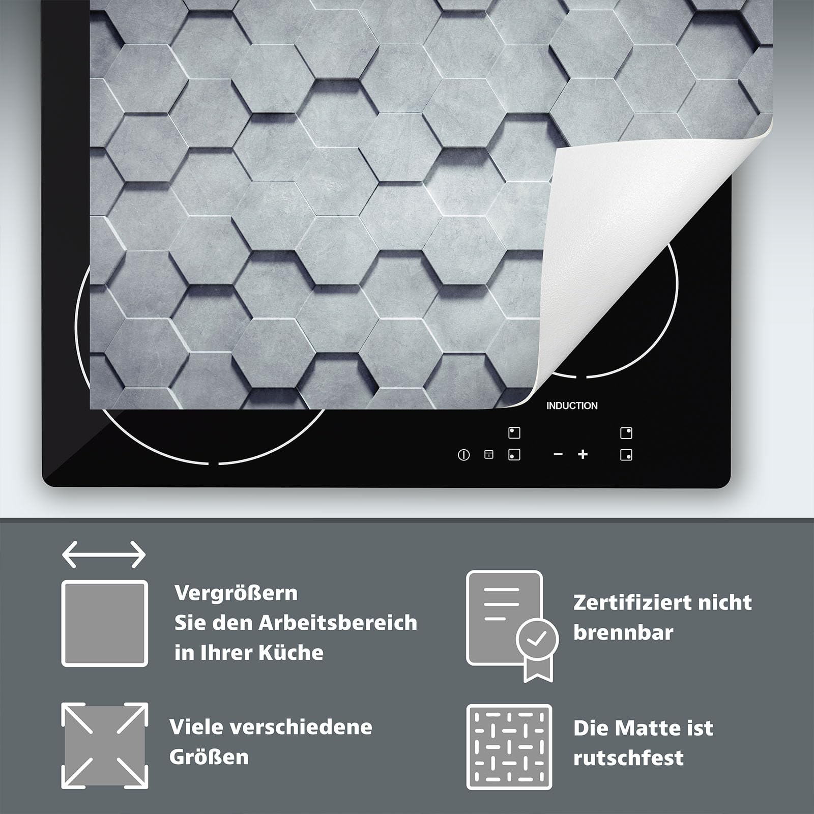Gewinne extra Arbeitsfläche in deiner Küche! Diese praktische Herdabdeckung schützt dein Ceranfeld vor Kratzern und wird zur zusätzlichen Ablagefläche. Einfach aufrollen wenn nicht benötigt.