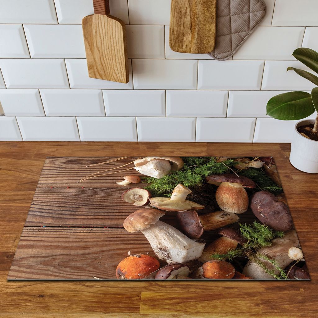 3mm starkes Vinyl mit rutschfester Unterseite. Leicht zu reinigen - nur feuchtes Tuch nötig. Passt auf die meisten Standard-Herde (80x52cm).