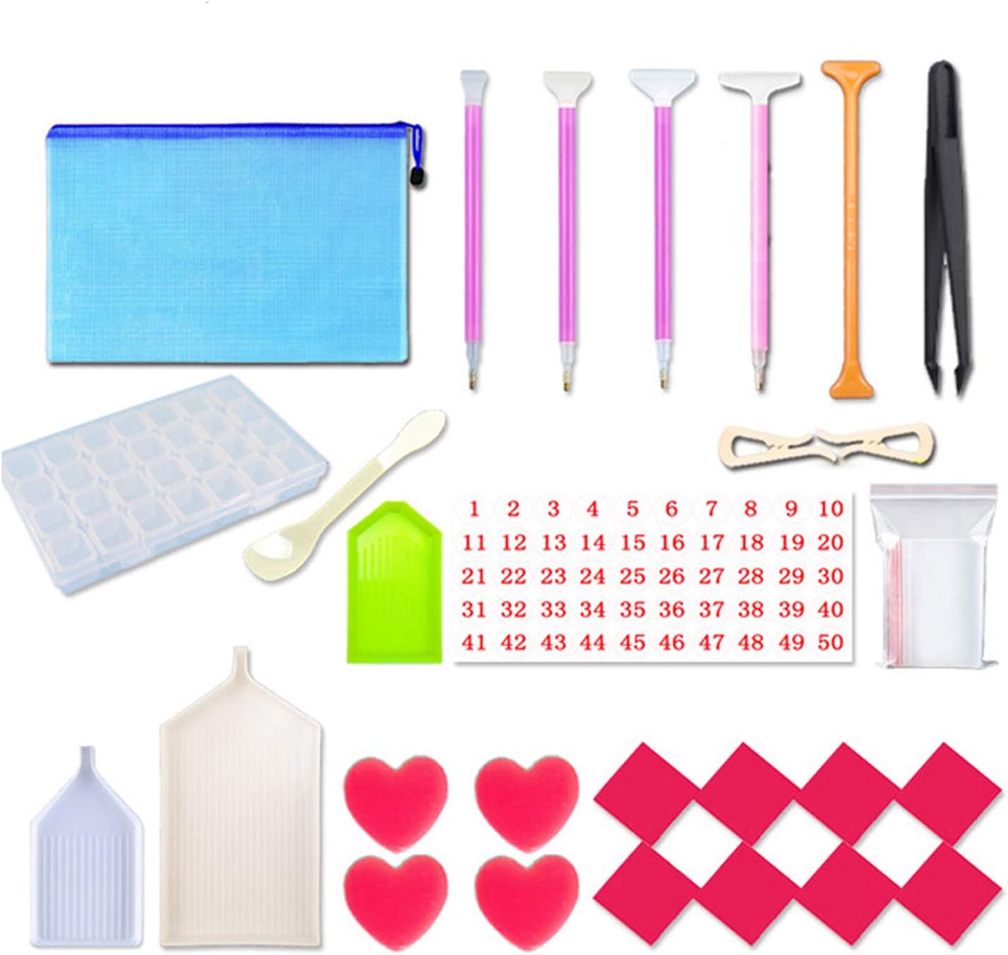 Dieses umfangreiche Noviatrix Diamond Painting Set mit 84 Teilen ist alles, was du für deine Diamant Malerei Projekte brauchst! Enthalten sind 5 Diamant-Zeichenstifte mit 6 austauschbaren Köpfen, mit denen du 1, 3, 6 oder 9 Diamanten gleichzeitig aufkleben kannst - super praktisch für große Flächen mit gleichen Farben. Das ergonomische Design mit Schwamm-Stifthalter macht das Arbeiten besonders bequem und ermüdungsfrei. Im Set findest du außerdem eine 28-fach Aufbewahrungsbox für deine Diamanten, 42 Zip-Lock Taschen, 10 Tonkleber, 2 Kunststoff-Paletten, 4 Schwamm-Clips, 2 Clips, 1 Pinzette, 1 Diamant-Farbrolle und 1 Farb-Fixierer. Alles ist hochwertig verarbeitet und langlebig - geeignet für Erwachsene und Kinder jeden Alters. Egal ob runde Diamanten, quadratische Diamanten, Kristalldiamanten oder Glasdiamanten - dieses Set ist vielseitig einsetzbar. Auch für Nagelkunst oder zum Dekorieren von Handys kannst du die Werkzeuge verwenden. Mit der praktischen Aufbewahrungsbox bleibt alles ordentlich und griffbereit. Perfekt als Geschenk für kreative Freunde oder um selbst in die Welt des Diamond Paintings einzusteigen. Tauche ein in die bunte Welt der Diamant-Kunst!