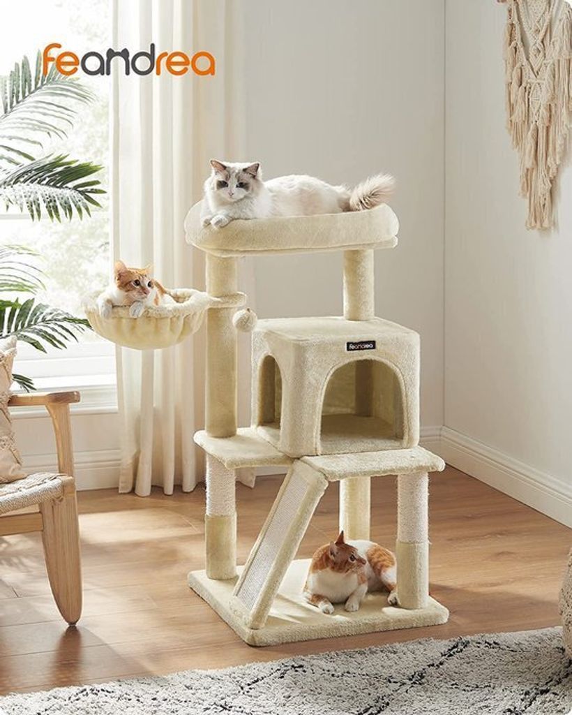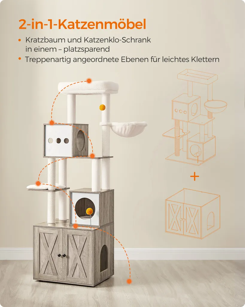 Deine Katze kratzt gerne am Sofa? Dann wird sie diesen Kratzbaum lieben! Mit 85 cm Höhe und einem extra dicken Sisalstamm (17 cm Durchmesser) bietet er auch großen Katzen wie Maine Coon genug Platz zum Ausstrecken und Krallenwetzen. Der Stamm ist robust umwickelt, hält auch bei starkem Kratzen lange. Oben wartet ein schwingender Plüschball mit Glocke – da kommt keine Langeweile auf! Der stabile Sockel (50x40 cm) kippt nicht um, deine Katze kann sicher spielen und klettern. Einfach aufstellen, am besten nah an der Wand für noch mehr Stabilität. Deine Möbel werden's dir danken! Perfekt für alle, die ihre Wohnung katzenfreundlich einrichten wollen, ohne auf Style zu verzichten. Die Farbe Taubengrau passt zudem in fast jedes Zimmer. Dein Stubentiger wird begeistert sein!