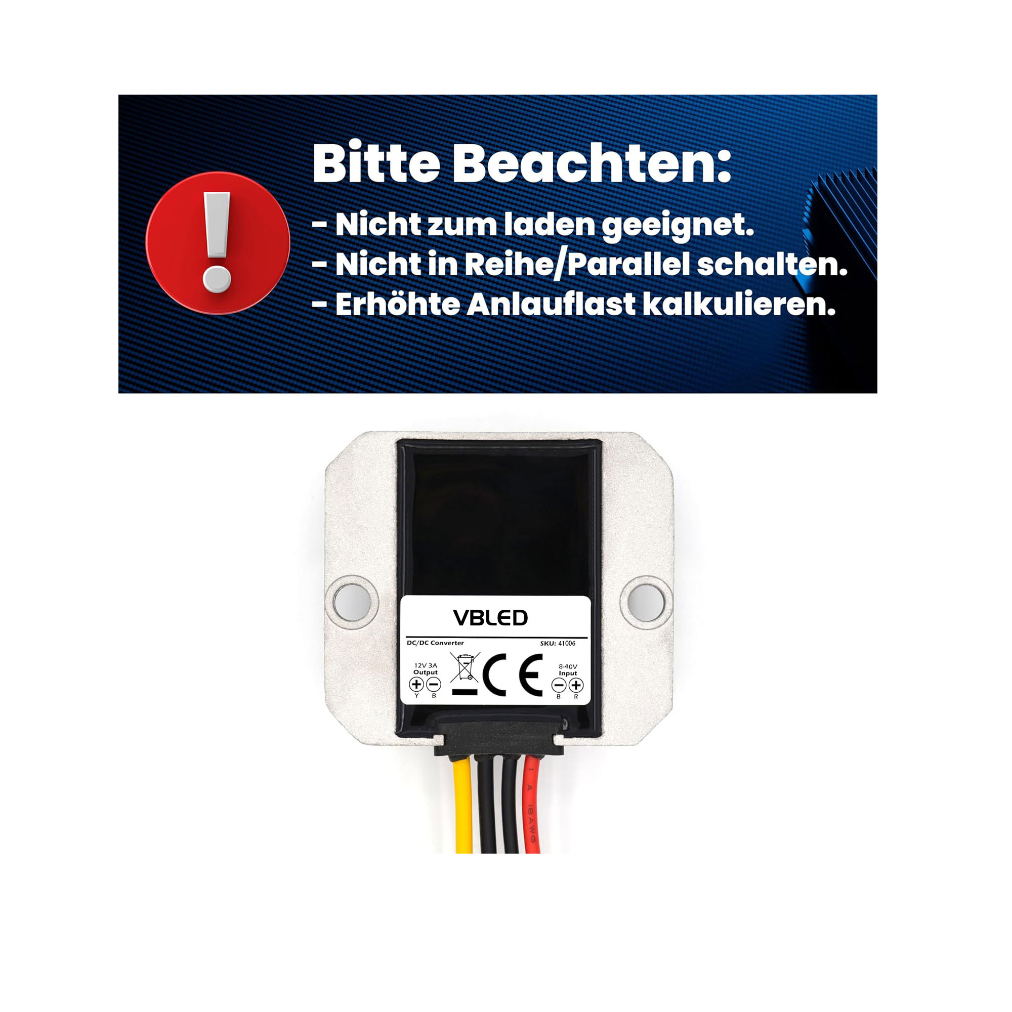 Dieser DC Spannungswandler ist ein echter Allrounder! Wandelt jede Spannung zwischen 8V und 40V stabil in 12V um - perfekt für 9V, 12V, 24V oder 36V Netzteile. Mit 5A Ausgangsstrom und 60W Leistung packt er so einiges. Die Umwandlungseffizienz liegt bei über 95% - kaum Energieverlust und wenig Wärmeentwicklung. IP68 wasser- und staubdicht - hält auch bei Regen, Schnee oder feuchten Bedingungen stand. Vierfacher Schutz: Überstromschutz (ab 5A), Kurzschlussschutz, Unterspannungsschutz (unter 8V) und Überhitzungsschutz. Kompakt und einfach zu installieren - braucht kaum Platz. Ideal für Auto, Boot, Outdoor oder industrielle Anwendungen. Versorgt zuverlässig 12V Geräte wie Lüfter, Motoren, Audioanlagen oder Monitore. Nie wieder Probleme mit Spannungsschwankungen! Einfach anschließen und sich über stabile 12V freuen. Qualität die unter härtesten Bedingungen hält.