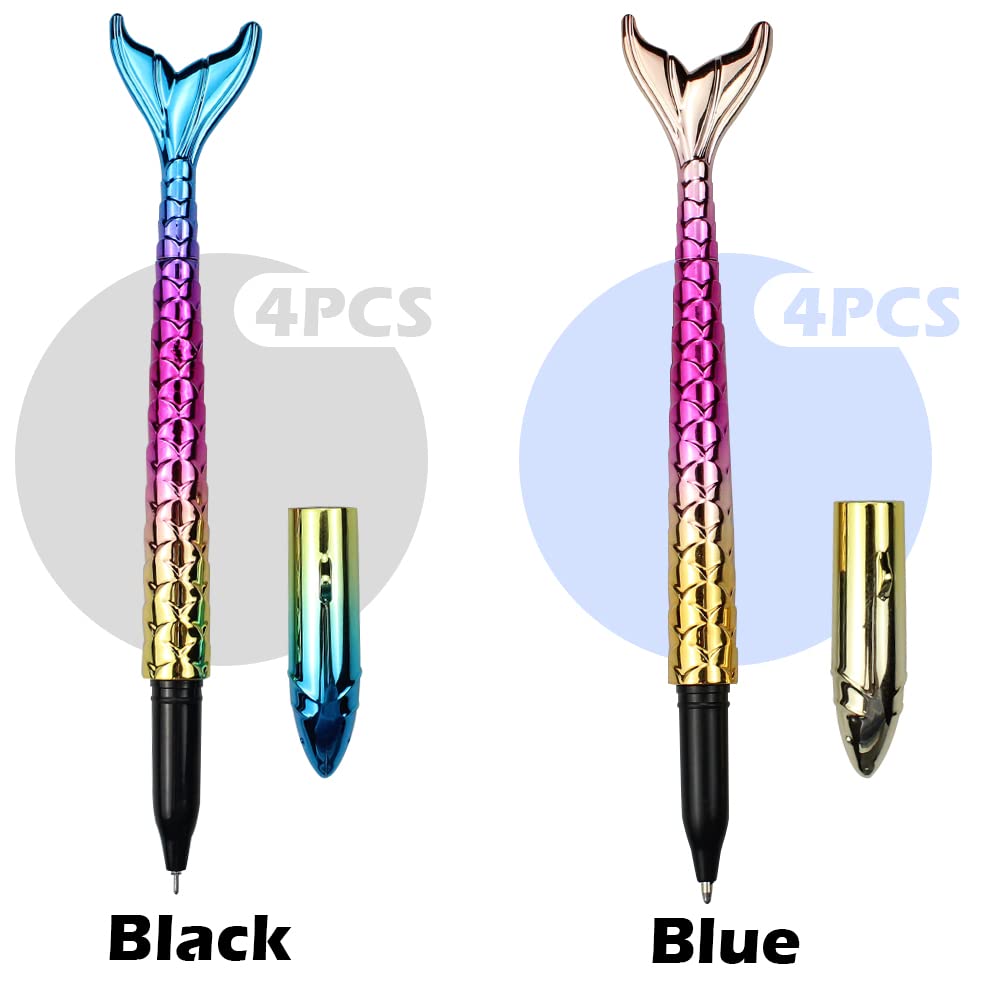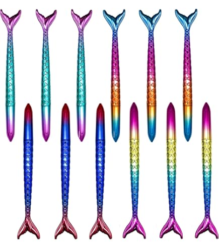 Oh wie süß sind denn diese Meerjungfrau-Stifte! Im 8er-Set mit vier blauen 0,5mm Kugelschreibern und vier schwarzen 0,35mm wasserbasierten Stiften. In Fischform gestaltet - macht das lästige Schreiben gleich viel spaßiger! Besonders für Schüler geeignet - weckt das Interesse am Schreiben. Mit ca. 7,5cm Länge perfekt für kleine Hände. Der Griff ist bequem und behindert das Schreibgefühl nicht. Schreiben super glatt ohne Wasserschnitt - hochwertige Materialien sorgen für leichten Halt und Schreibkomfort. In vier verschiedenen Farben - je zwei pro Farbe für den täglichen Bedarf. Einfach das perfekte Geschenk für Schüler - niedliches Aussehen und gute Schreibperformance in einem. Ob für die Schule, das Büro oder einfach nur zum Dekorieren - diese Stifte machen immer was her!