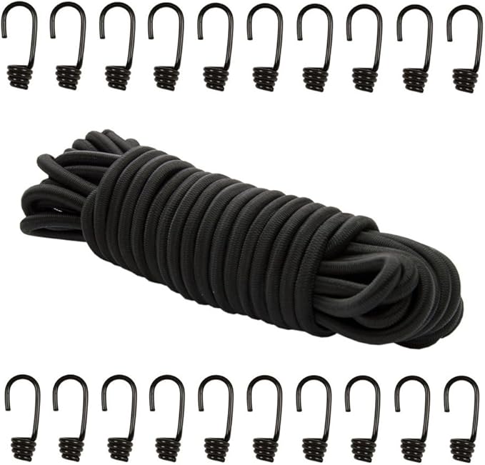 Boah, dieses Gummiseil ist ja der absolute Alleskönner! Mit 10m Länge und 8mm Durchmesser hast du genug Material für alle möglichen Projekte. Der Latexkern macht es super elastisch - dehnt sich super weit und geht wieder in die Ursprungsform zurück. Der abriebfeste Polypropylen-Mantel ist UV-beständig und wetterfest - hält also auch draußen ewig! Mit den 20 Clips kannst du das Seil super einfach zuschneiden und mit einem Feuerzeug versiegeln - kein Fummel mit Schere und Knoten! Perfekt für Planen auf dem Anhänger, beim Camping fürs Zelt, im Garten für Sonnenschirme oder einfach zum Fixieren von allem Möglichen. Das schwarze Design sieht nicht nur cool aus, sondern ist auch praktisch - versteckt sich gut. Einfach durch Ösen ziehen, verknoten oder mit den Clips befestigen - so einfach kann Befestigen sein! Ob beim Transport, im Handwerksbereich oder für Outdoor-Aktivitäten - dieses Seil ist dein bester Helfer. Und wenn mal ein Stück ab ist - kein Problem, einfach neu versiegeln und weiter geht's!