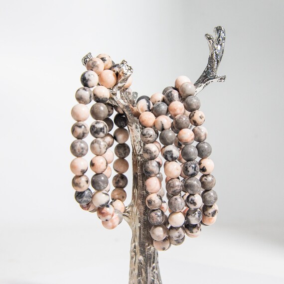 • Naturstein Armband Rosa Zebra - 8mm Lava Perlen Chakra Armreif