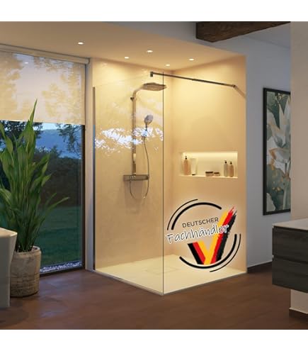 Wow, diese Duschabtrennung macht jedes Badezimmer zum Wellness-Oase! Mit satten 100cm Breite und 195cm Höhe passt sie perfekt in deine Dusche. Das 8mm dicke Nano-ESG-Glas ist nicht nur super stabil, sondern hat auch eine spezielle Beschichtung - das Wasser perlt einfach ab und du musst kaum putzen! Der clevere Edelstahl-Stabilisator lässt sich von 75-125cm verstellen und gibt dir extra Stabilität. Besonders praktisch: Du kannst die Duschwand sowohl links als auch rechts montieren, auf dem Boden oder auf einer Duschwanne. Der schlanke Aluminiumrahmen in Silber sieht mega modern aus und die verdeckten Schrauben sorgen für einen cleanen Look. Einfache Montage ohne Fachkenntnisse - aber mess vorher lieber nochmal nach, ob's auch wirklich passt! So wird duschen zum echten Erlebnis.