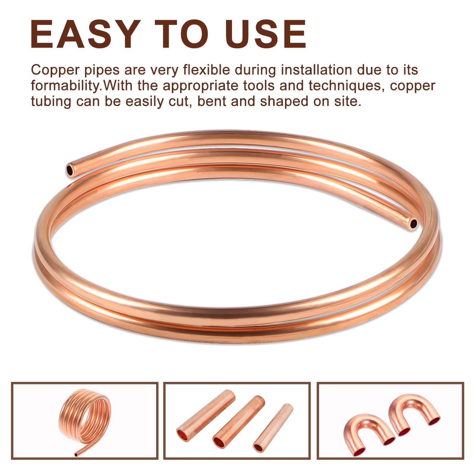 Hochflexibles Kupferrohr für deine Installationsprojekte! Mit 8mm Außendurchmesser und 6mm Innendurchmesser, 1,5m lang. Perfekt für Kältetechnik, Klimaanlagen, Generatoren und vieles mehr. Das weiche Kupfer lässt sich problemlos in jede Richtung biegen - ideal für enge Räume und komplexe Installationen. Aus 99,9% reinem Kupfer gefertigt, korrosionsbeständig und mit hervorragender Wärmeleitfähigkeit. Einfach zurechtbiegen, installieren und von der langen Lebensdauer profitieren. Ob für den Profi oder ambitionierten Heimwerker - dieses Kupferrohr macht jede Installation zum Kinderspiel!