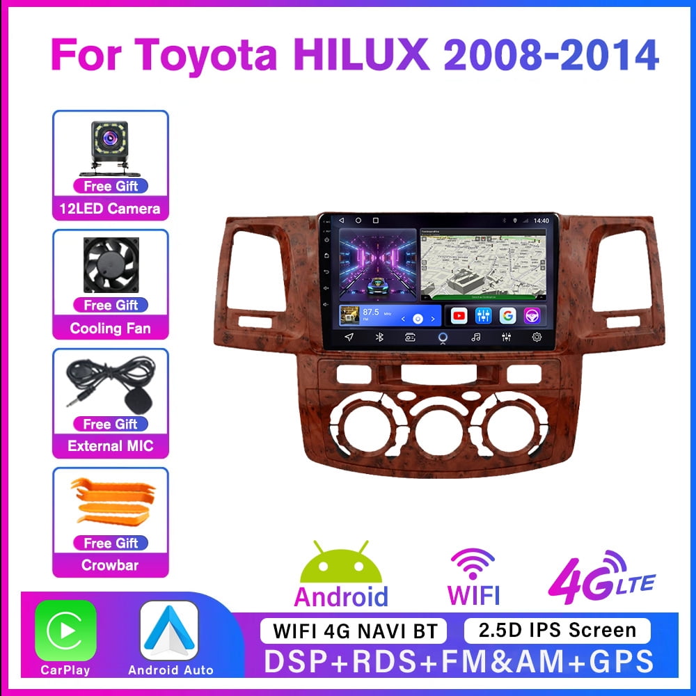 Upgrade dein Toyota Armaturenbrett mit diesem krassen 9 Zoll Android 14 Autoradio! Mit satten 6GB RAM und 128GB Speicher hast du genug Power für alle deine Lieblings-Apps. Der IPS-Touchscreen zeigt alles in brillianten Farben - ob Navigation, Musik oder Videos.\\n\\nEcht praktisch: Kabelloses CarPlay & Android Auto! Einfach per Bluetooth verbinden und du kannst Karten abrufen, Musik streamen, Anrufe tätigen - alles ohne Kabelwirrwarr. Der eingebaute DSP-Chip sorgt für ultraklaren Sound, und mit 64-Segment-EQ stellst du den Sound genau nach deinem Geschmack ein.\\n\\nRückfahrkamera-Anschluss ist natürlich dabei - die HD-Nachtsicht-Kamera mit 170° Blickwinkel und IP68 Schutz macht das Einparken zum Kinderspiel. Bluetooth 5.0, WiFi, GPS Navigation - alles onboard! Besonders cool: Split-Screen Funktion, sodass du z.B. gleichzeitig Navigation und Musik im Blick hast. Lenkradsteuerung compatible, damit du während der Fahrt nicht abgelenkt wirst.\\n\\nWichtig: Bitte vorher checken ob dein Auto 12V hat - alles darüber könnte das Radio schrotten! Installation ist straightforward - unsere Stromkabel verwenden, nicht den Originalstecker. Passt perfekt für Toyota Hilux, Fortuner, Revo, Vigo von 2005-2014.