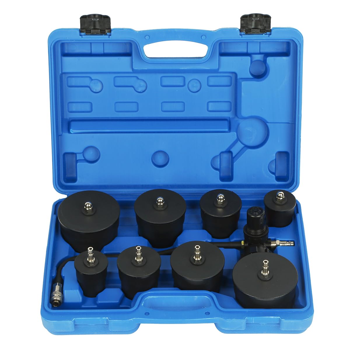 Professionelles Lecktest-Set für Turbolader! Enthält Manometer (0-6 bar), 4 Paar Stufenadapter (1,38-3,54 Zoll) und alles für komplette Drucktests. Perfekt zum Aufspüren von Lecks in Turbinensystemen und Kühlkreisläufen. Einfache Bedienung: Abluftschlauch anschließen, System unter Druck setzen und Manometer beobachten. Für die meisten Pkw und leichte Lkw geeignet. Hilft bei der Fehlersuche und spart Werkstattkosten. Robustes Material für langjährigen Einsatz. Alles in einem Set - sofort einsatzbereit!