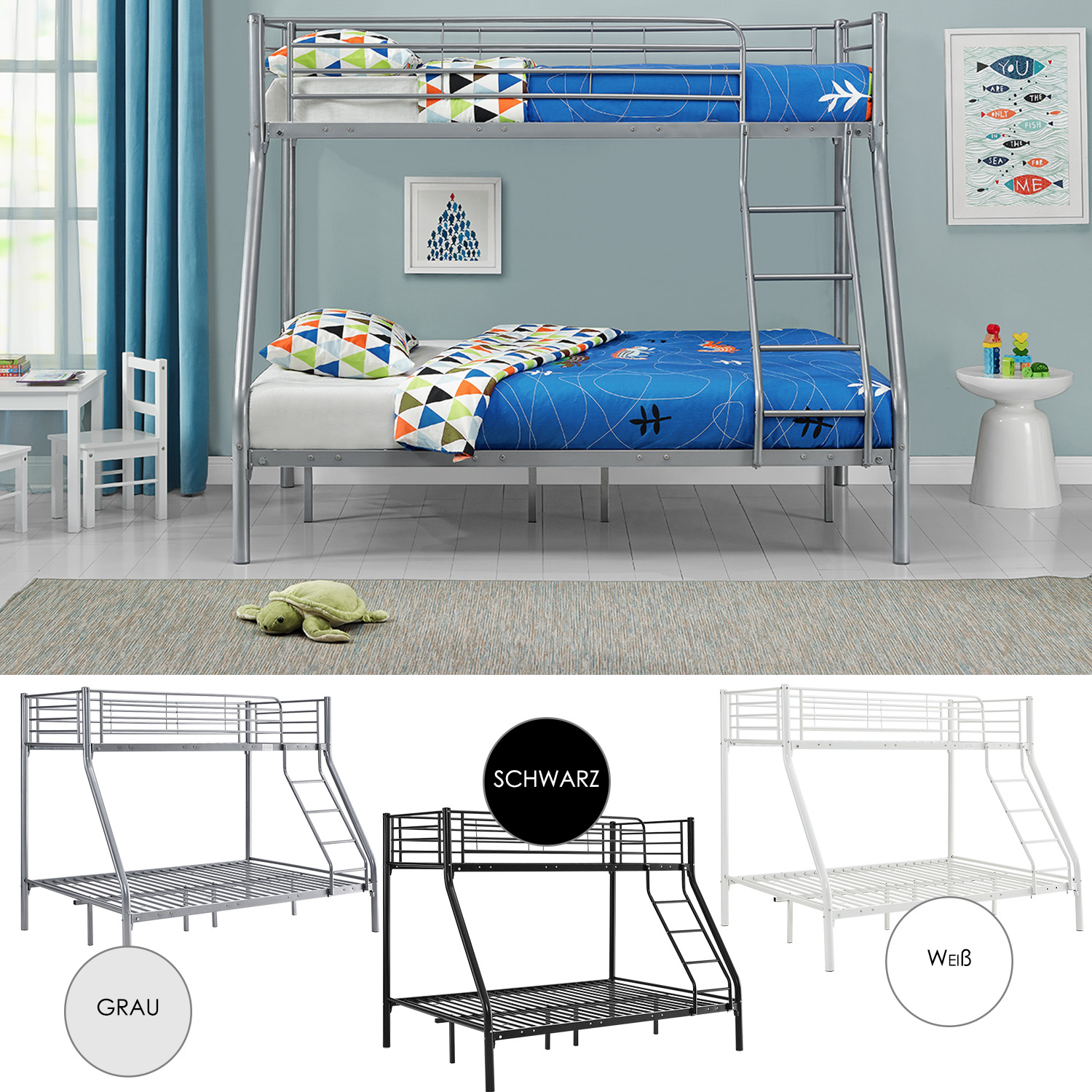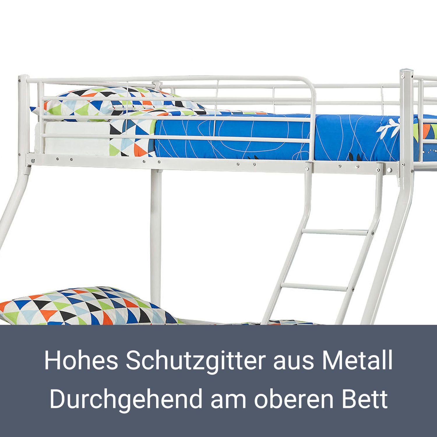 Wow, dieses Willood Etagenbett ist einfach perfekt fürs Kinderzimmer! Aus robustem, pulverbeschichtetem Metall gefertigt, bietet es maximale Stabilität und Langlebigkeit. Mit den Maßen 208x96x150cm (LxBxH) ist es platzsparend und funktional. Für Matratzen 90x200cm geeignet - aber Achtung: Matratzen sind nicht im Lieferumfang enthalten! Das Sicherheitsgeländer geht komplett um das obere Bett und die stabile Aufstiegsleiter sorgt für sicheres Klettern. Einfach zusammenzubauen - allerdings sollten das Erwachsene übernehmen. Deine Kinder werden begeistert sein von ihrem neuen Abenteuer-Bett! Perfekt für Geschwister oder wenn häufig Freunde zu Besuch sind. Macht das Zubettgehen zum Erlebnis und spart dabei wertvollen Platz im Zimmer. In elegantem Weiß passt es zu jeder Einrichtung. Ein Bett, das nicht nur praktisch ist, sondern auch noch richtig gut aussieht!