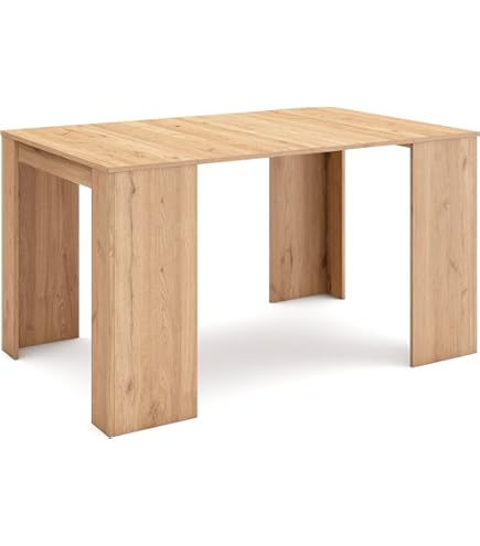 Wow, dieser Tisch ist ja ein echter Verwandlungskünstler! Als schicke Konsole mit 74 cm Höhe, 90 cm Länge und 54 cm Breite passt er perfekt in deinen Flur oder Wohnbereich. Doch wenn Besuch kommt, wird daraus ein riesiger Esstisch für bis zu 10 Personen - ganze 239 cm lang! Einfach ausziehen und schon hast du Platz für die ganze Familie oder deine Gäste. Hergestellt aus widerstandsfähigen Spanplatten mit 16-22 mm Stärke und stabilen Stahlauszügen, die auch bei häufigem Gebrauch nicht nachgeben. Die weiße Melamin-Oberfläche ist super pflegeleicht - einfach mit einem feuchten Tuch abwischen. Die Montage ist kinderleicht, alles Notwendige liegt bei. Perfekt für kleine Wohnungen, wo jeder Zentimeter zählt! Ob als Esstisch, Arbeitsplatz oder Ablage - dieser Tisch erfüllt alle Wünsche. Ein echter Platzwunder, der dein Zuhause noch praktischer macht!