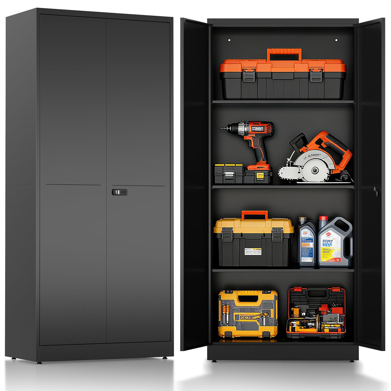 Ordnung und Sicherheit in einem! Dieser stabile Metallschrank mit den Maßen 90x80x40cm ist der perfekte Aufbewahrungshelfer für Büro, Werkstatt oder Zuhause. Das integrierte Zahlenschloss sorgt für maximale Sicherheit - kein Herumgesuche nach Schlüsseln mehr! Die verstellbaren Regale lassen sich flexibel an deine Bedürfnisse anpassen, ob für Ordner, Werkzeuge oder Technikzubehör. Mit einer Tragkraft von bis zu 30 kg pro Boden hält er auch schwere Gegenstände problemlos aus. Die pulverbeschichtete Stahlkonstruktion ist korrosionsbeständig und extrem langlebig. Perfekt als Aktenschrank im Büro, Werkzeugschrank in der Garage oder einfach als Ordnungssystem im Abstellraum. Das moderne, schlanke Design passt sich jeder Einrichtung an und sorgt für klare Verhältnisse!