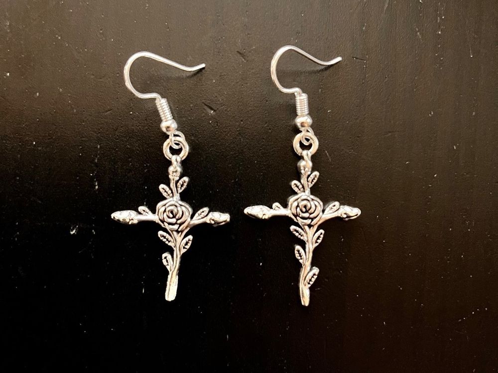 Der Anhänger mit Rosen-Details und die passenden Ohrstecker sind perfekt aufeinander abgestimmt. Hochwertige Verarbeitung für lang anhaltenden Glanz.