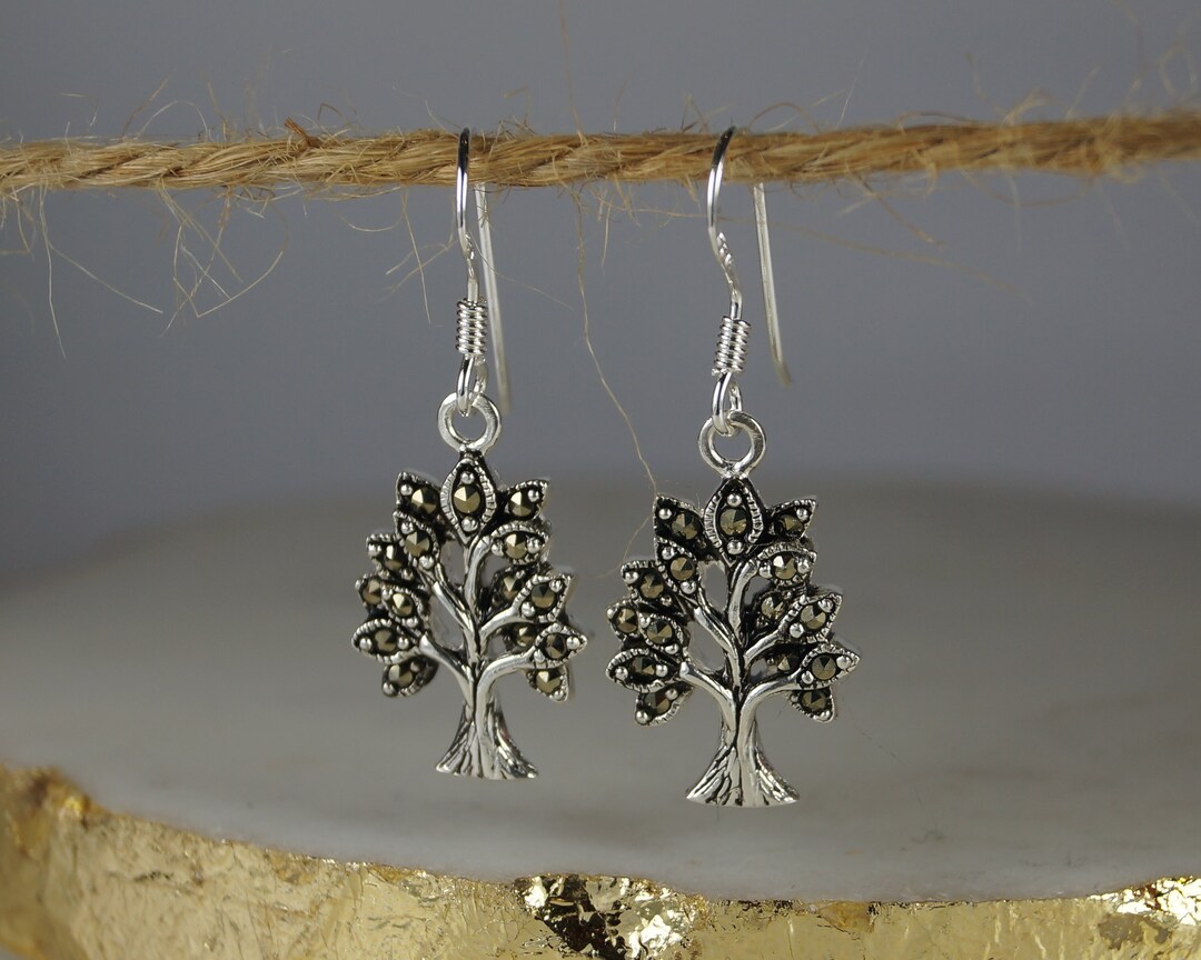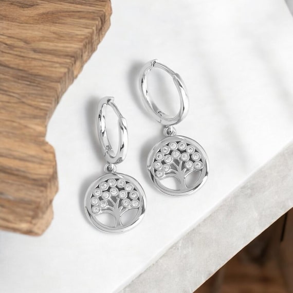925 Sterling Silber Baum Des Lebens Ohrringe - Leverback Für Damen